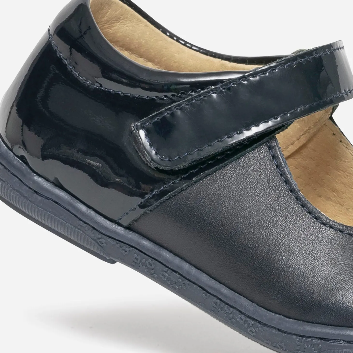 Babies bleu marine en cuir et verni