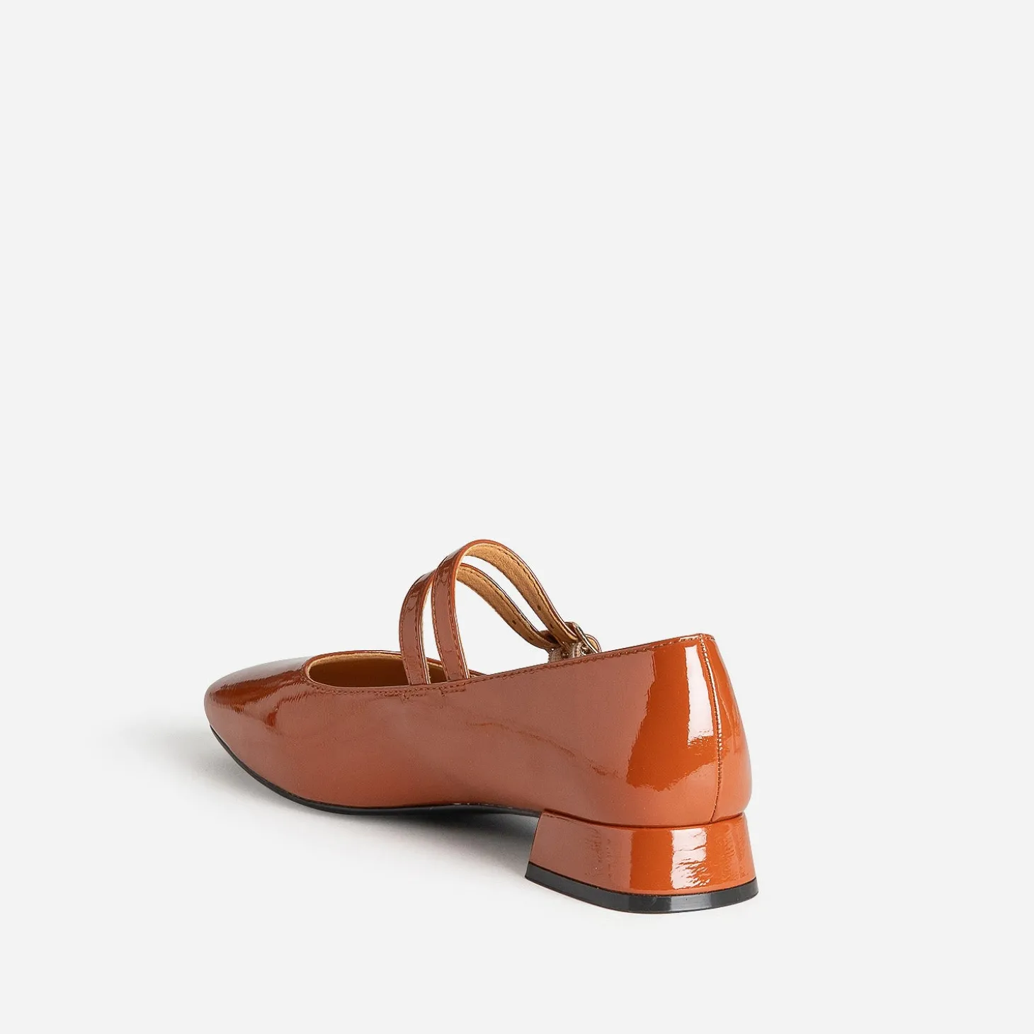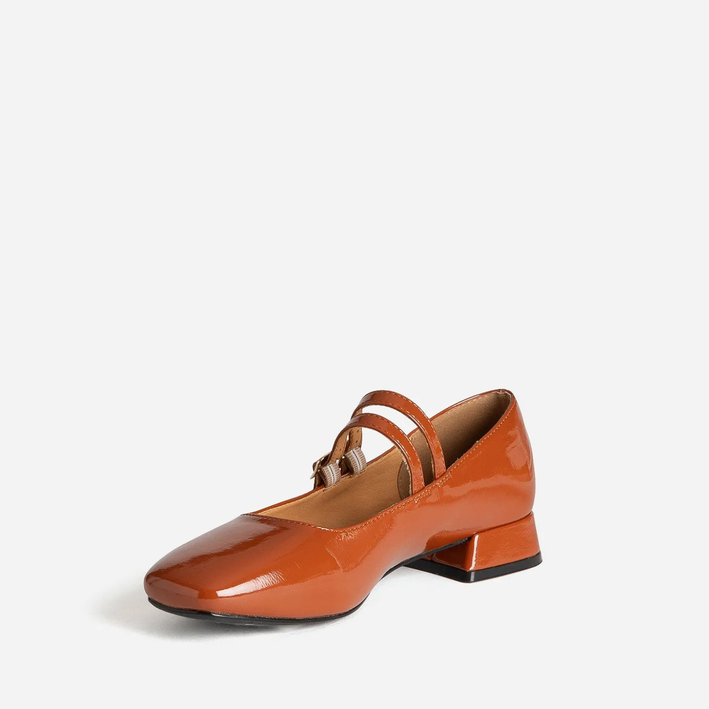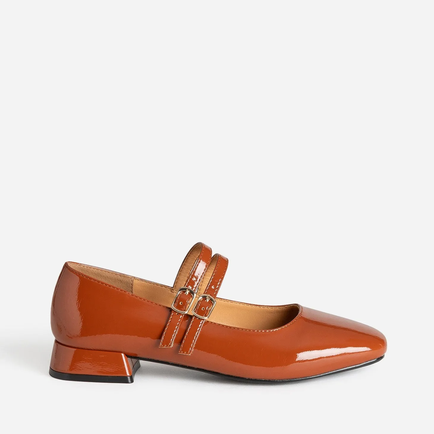 Deux fines brides parallèles, sur le dessus du pied : c’est la signature de la babies pour femme. En matière synthétique vernie, elle s’invite dans les tendances du moment, par son coloris cognac, et se laisse moderniser par un bout carré et un petit talon forme flare. Un modèle à essayer avec un costume à motif carreaux, à décaler avec un jean cropped oversize gris et un sweat rouge.