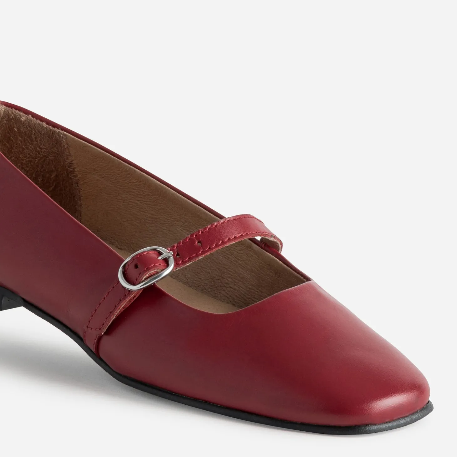 De ballerine à babies, une simple bride fait la différence. Reconnaissable à sa ligne épurée montée sur talon plat, elle se modernise par un bout carré et un cuir souple, à peine doublé. Un modèle décliné en coloris rouge vif, à préférer avec un top noir près du corps et un bas extra large, pour jouer les contrastes des volumes.
