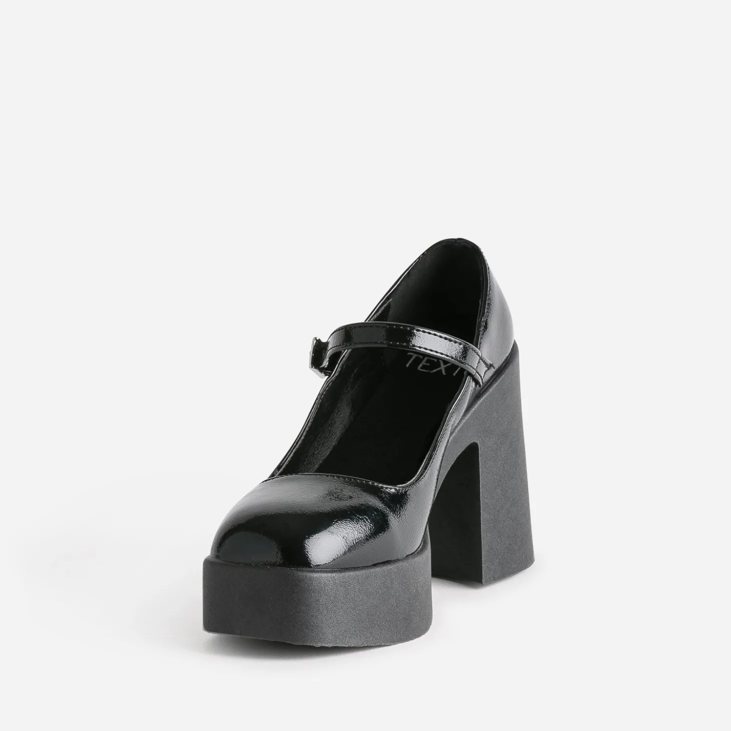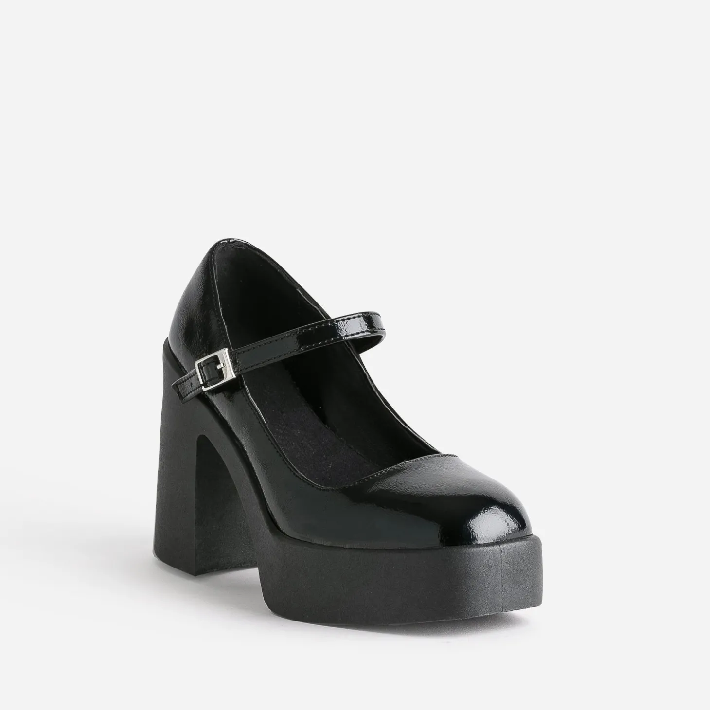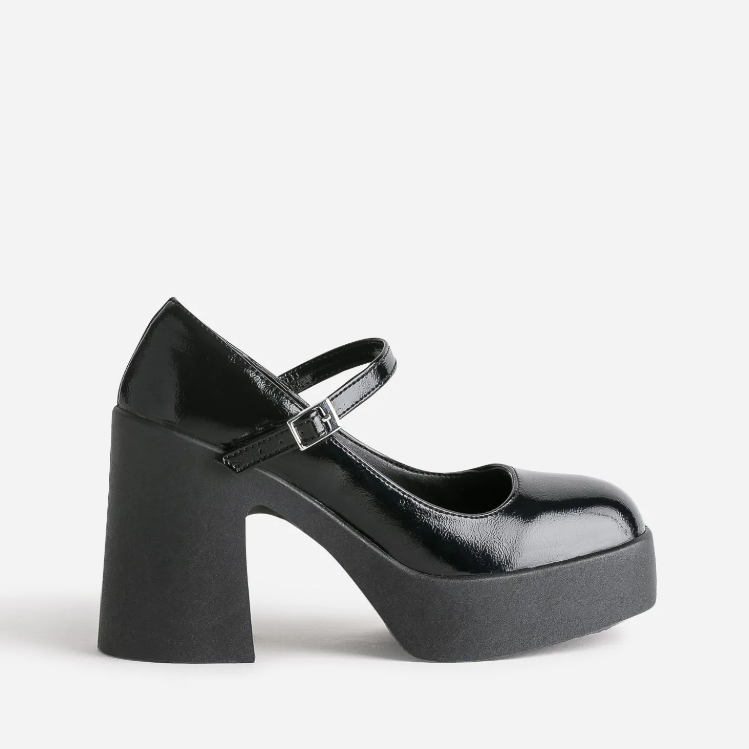 La tendance est au style rétro. La tendance est à la semelle épaisse. La tendance est aux couleurs sobres. Cette babies pour femme coche toutes les cases, pour vous séduire. En matière synthétique noire, elle se démarque par une finition vernie et se ferme par une fine bride à boucle. elle est montée sur une semelle ton sur ton à plateforme, 10,5 cm à l’arrière et 3 cm sur le patin avant. Privilégiez-la, dès l’arrivée du printemps.