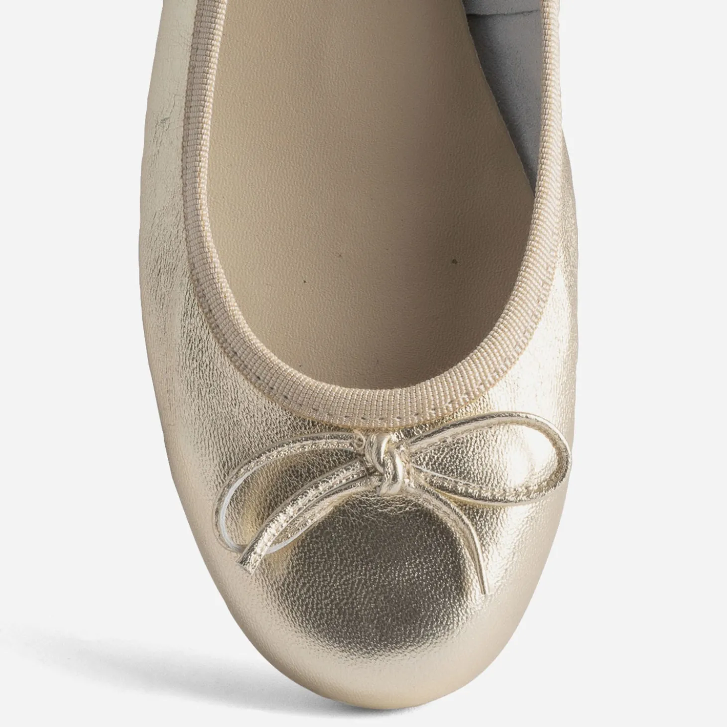 Ballerine dorée en cuir avec nœud