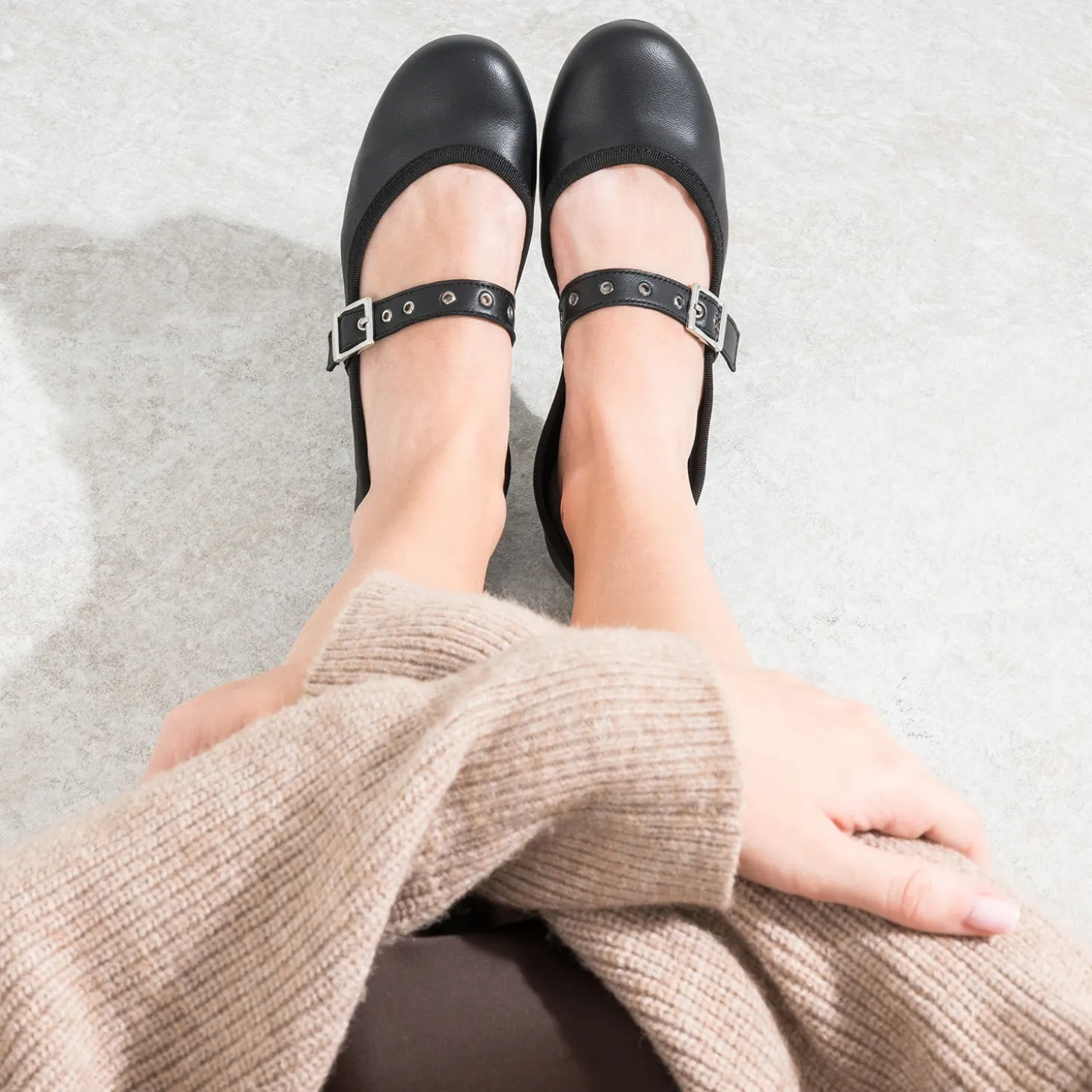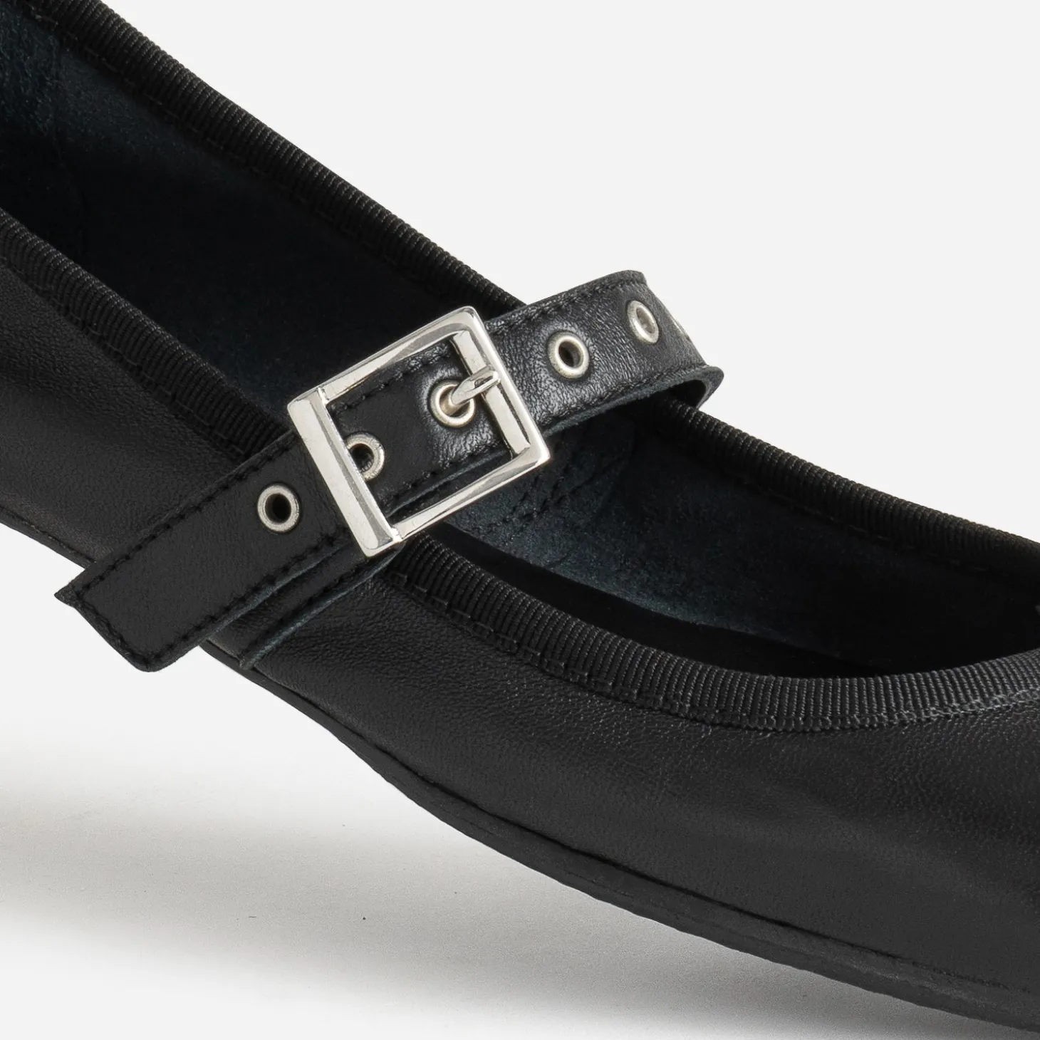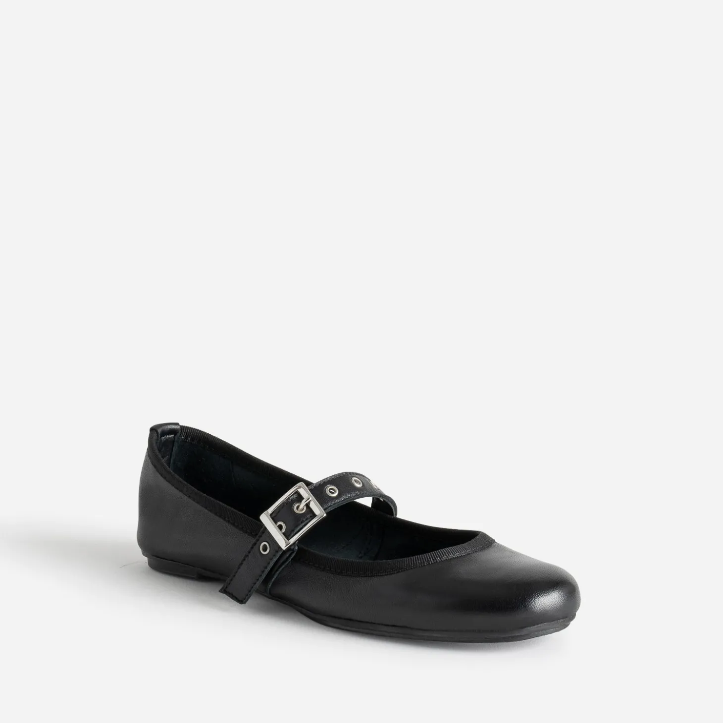 Ballerine noire en cuir avec bride à œillet