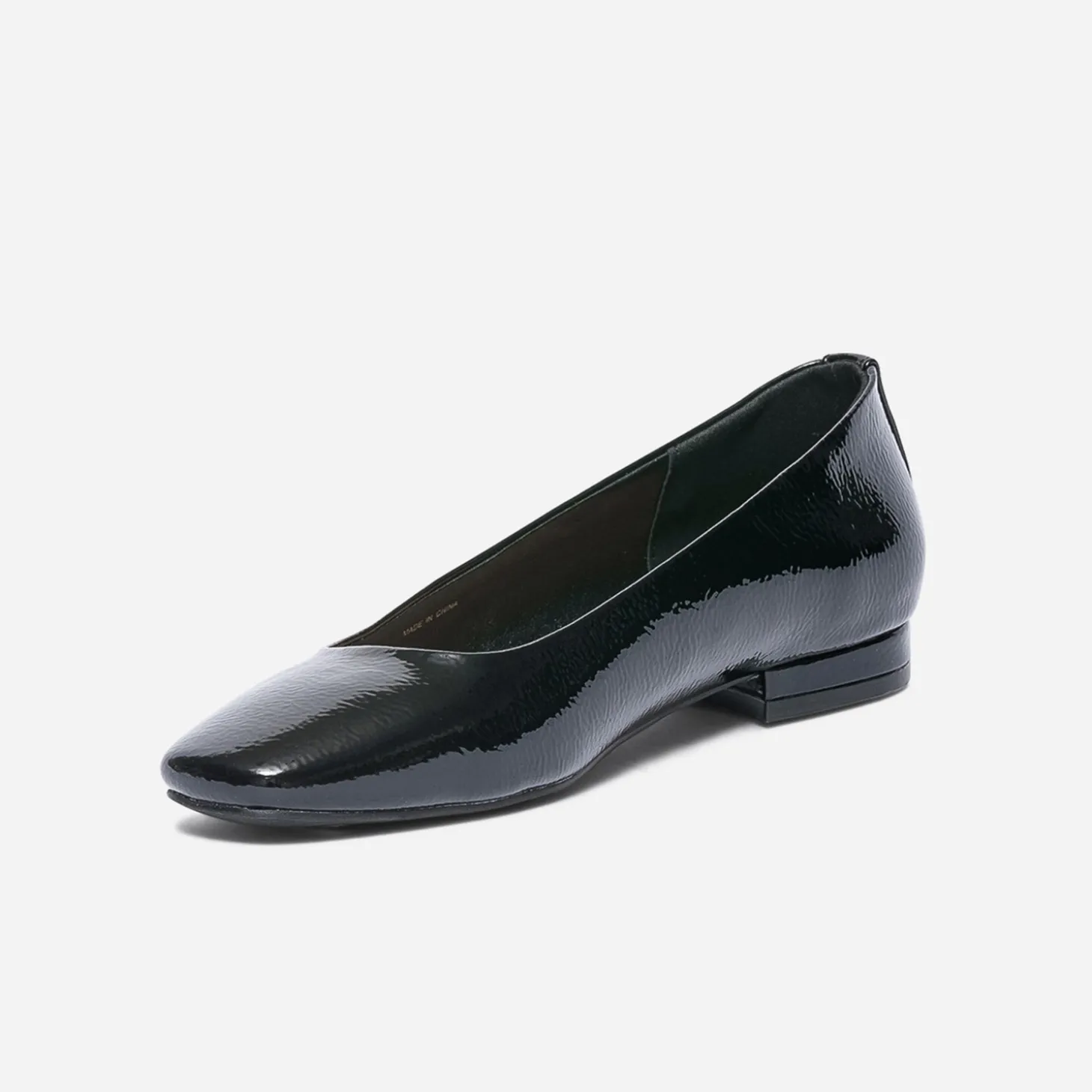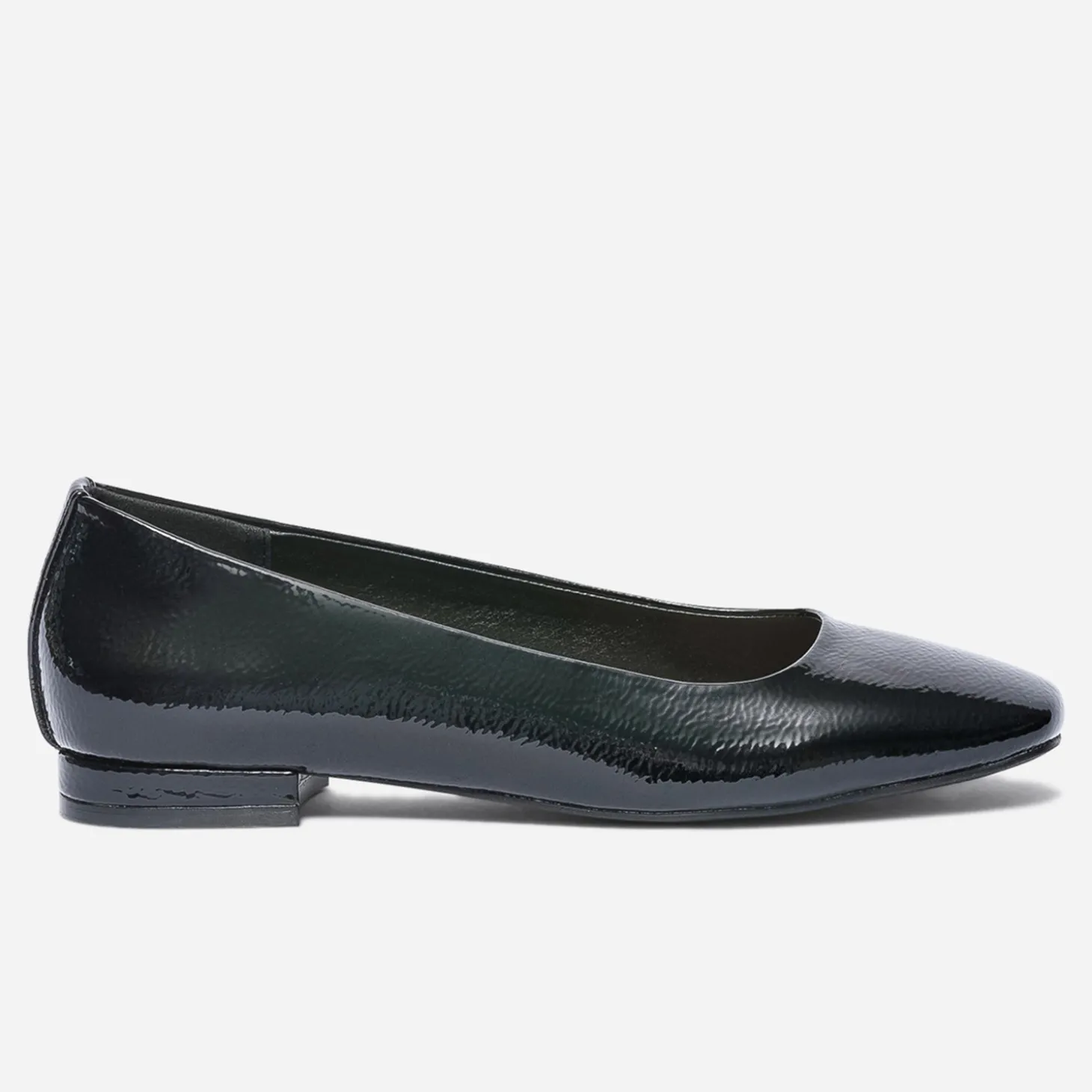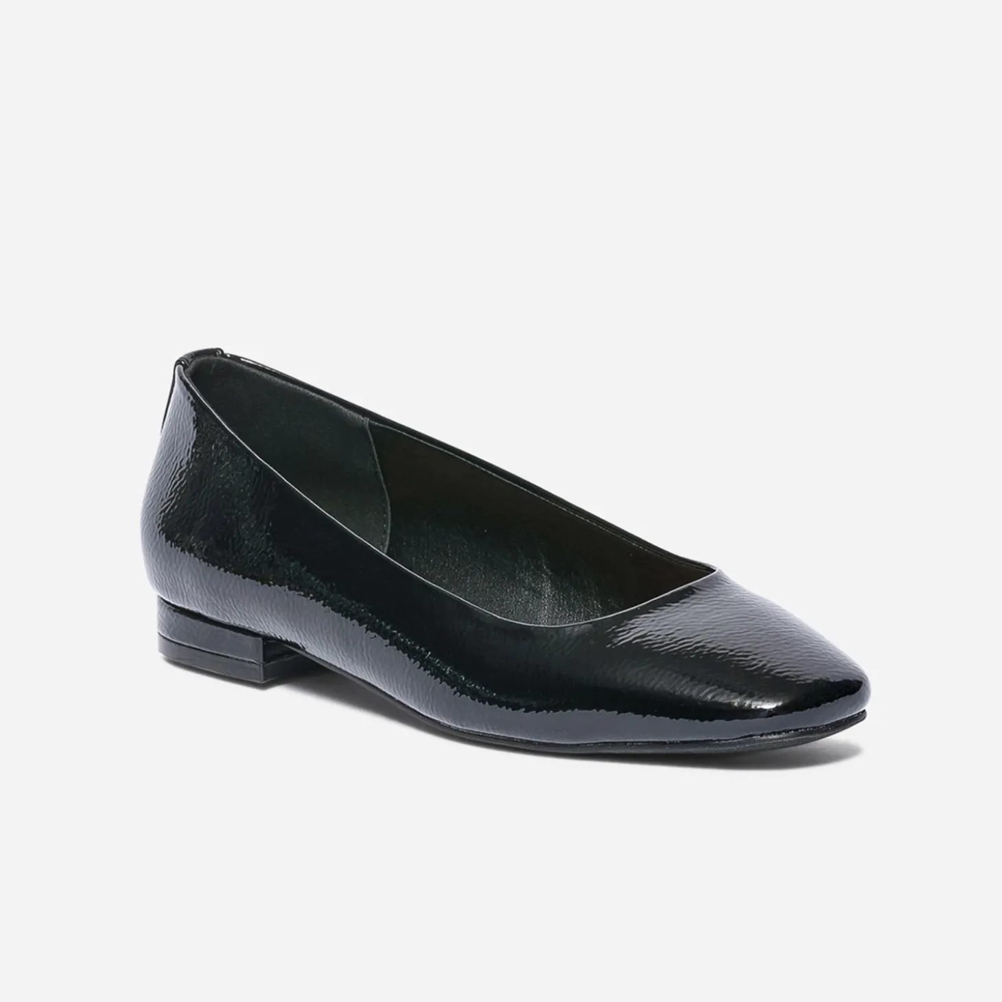 Bonne nouvelle ! Pas besoin de céder à la tendance jupe-ceinture pour porter la ballerine. En matière synthétique, elle propose un bout carré et une finition vernie sur coloris noir, pour rester facile à porter. Réservez-la pour les journées chargées où vous courrez de rendez-vous en rendez-vous.