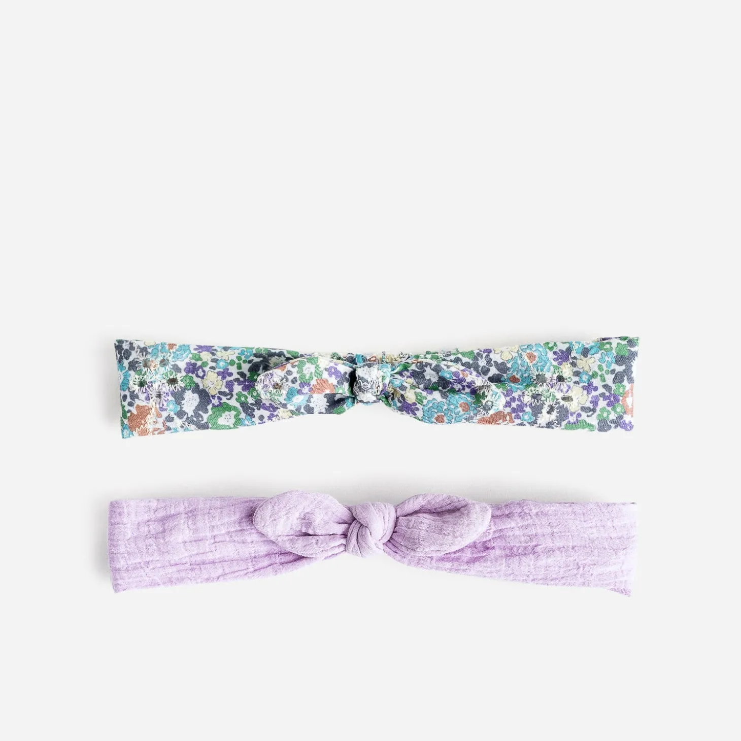 Uni parme ou imprimé fleurs : voici deux bandeaux à nœuds, parfaits pour retenir les cheveux des jeunes filles. Ils sont dotés d’un nœud, à placer sur le dessus de la tête, et d’un élastique, à placer dans la nuque, pour un maximum de confort.