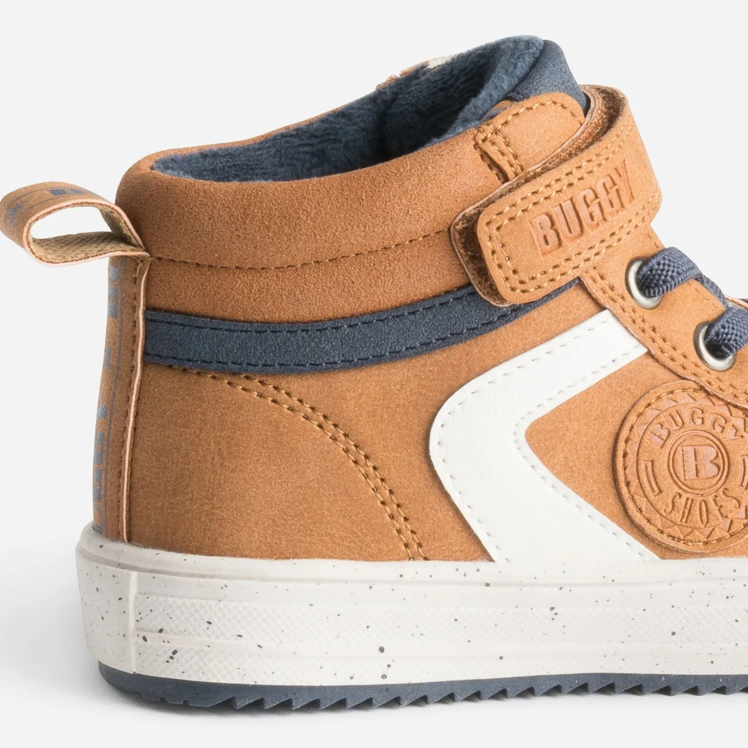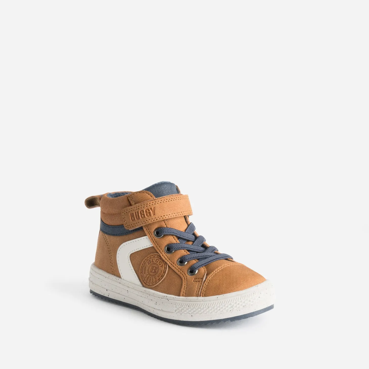 Le rêve d’un enfant, c’est une basket stylée, confortable, qui s’enfile facilement. En matière synthétique, elle se décline en coloris camel, avec découpes écrues et bleu marine. Elle se ferme par un lacet élastiqué et par un scratch. Zoom sur la semelle tachetée et crantée, pour une meilleure adhérence. Sweat, jeans, c’est l’allié de toutes ses tenues du quotidien.