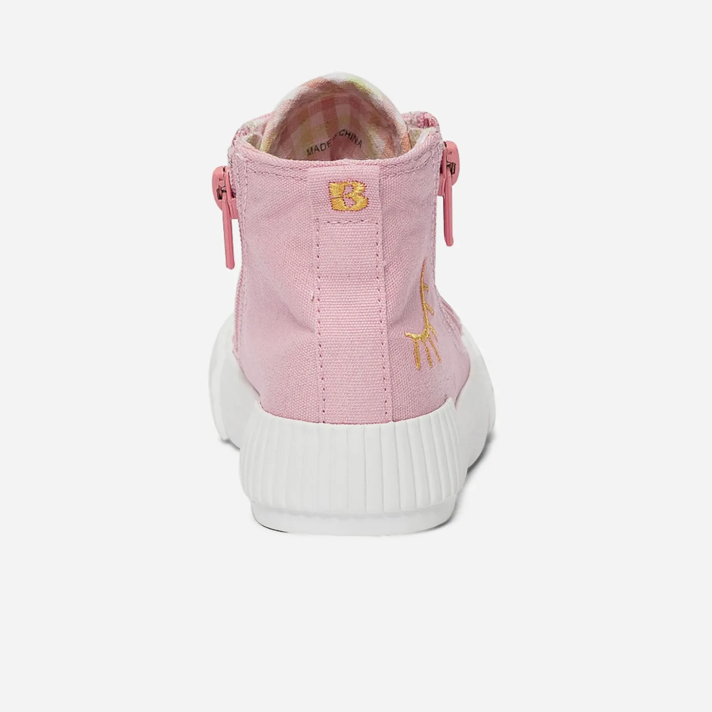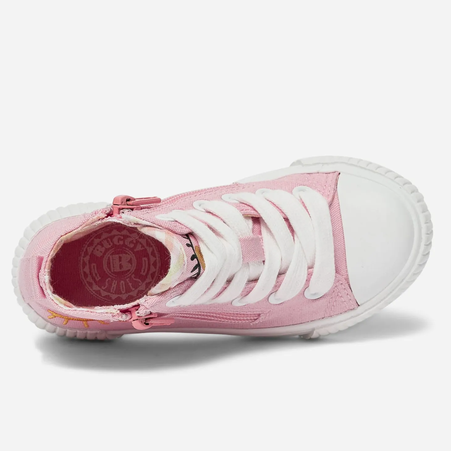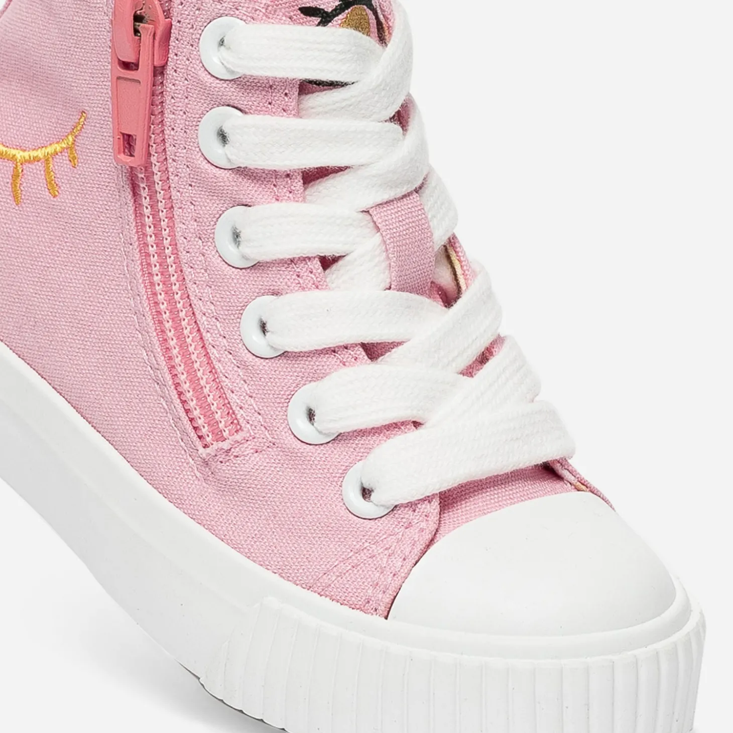 Après le boots, avant la sandale, optez pour la tennis en toile. Rose, elle est décorée d’un œil ouvert imprimé sur la languette, d’un œil fermé brodé sur le côté. Le bout est renforcé, la doublure imprimée vichy dans les tons pastel et elle se ferme par un lacet, doublé d’un zip intérieur. Un modèle pensé pour faciliter l’autonomie et ne pas perdre une minute de jeu !