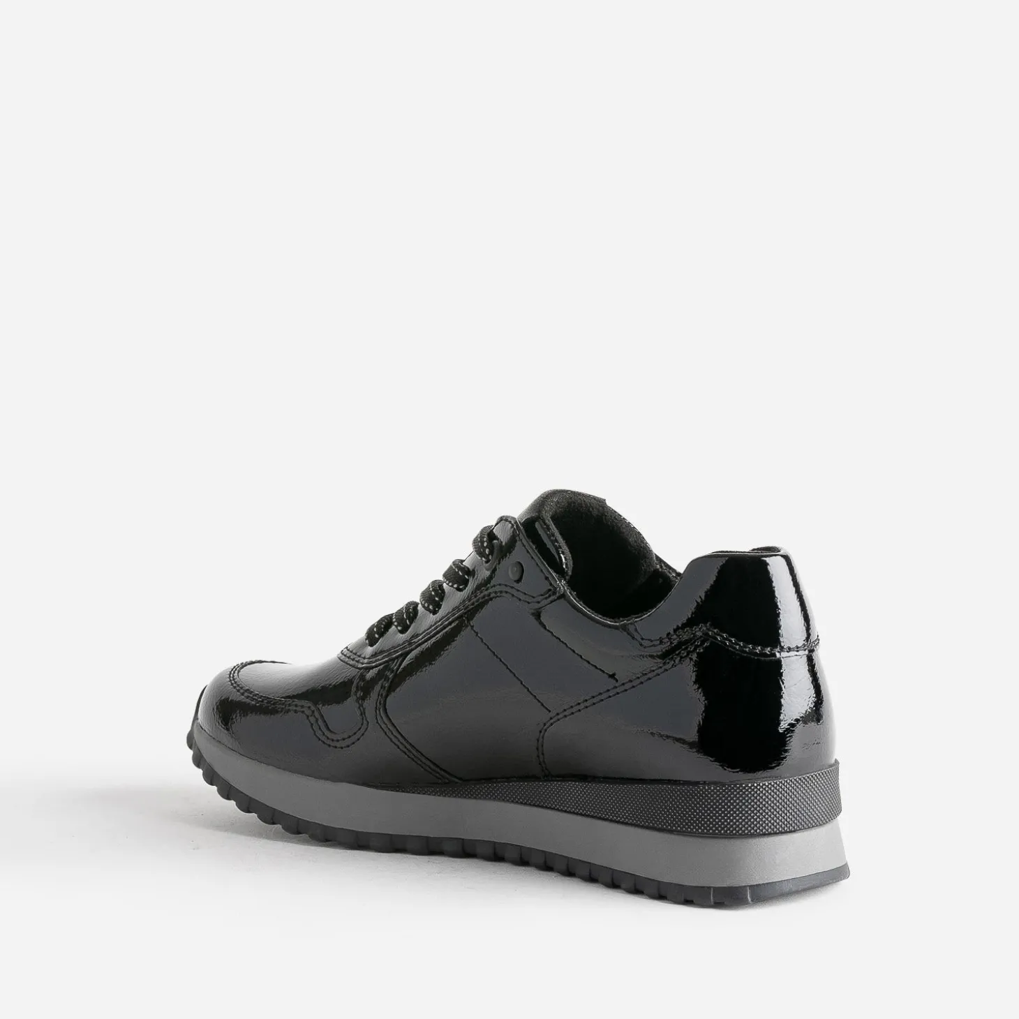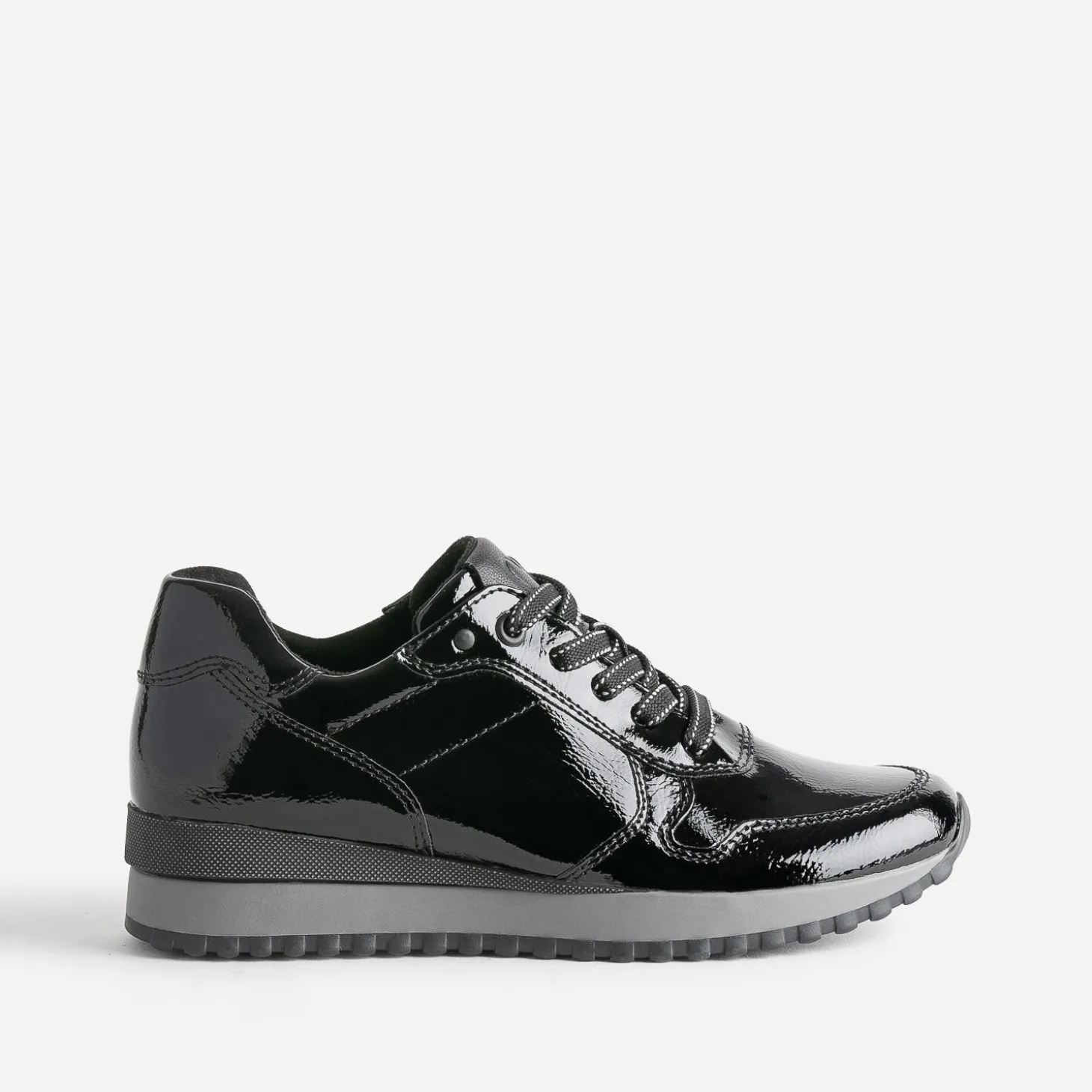 Modernité et style ne sont pas incompatibles. La preuve avec cette tennis femme. En matière synthétique noire, elle est twistée d’une finition vernie, au chic évident. Légèrement compensée, elle est parfaite pour l’entrée de saison.