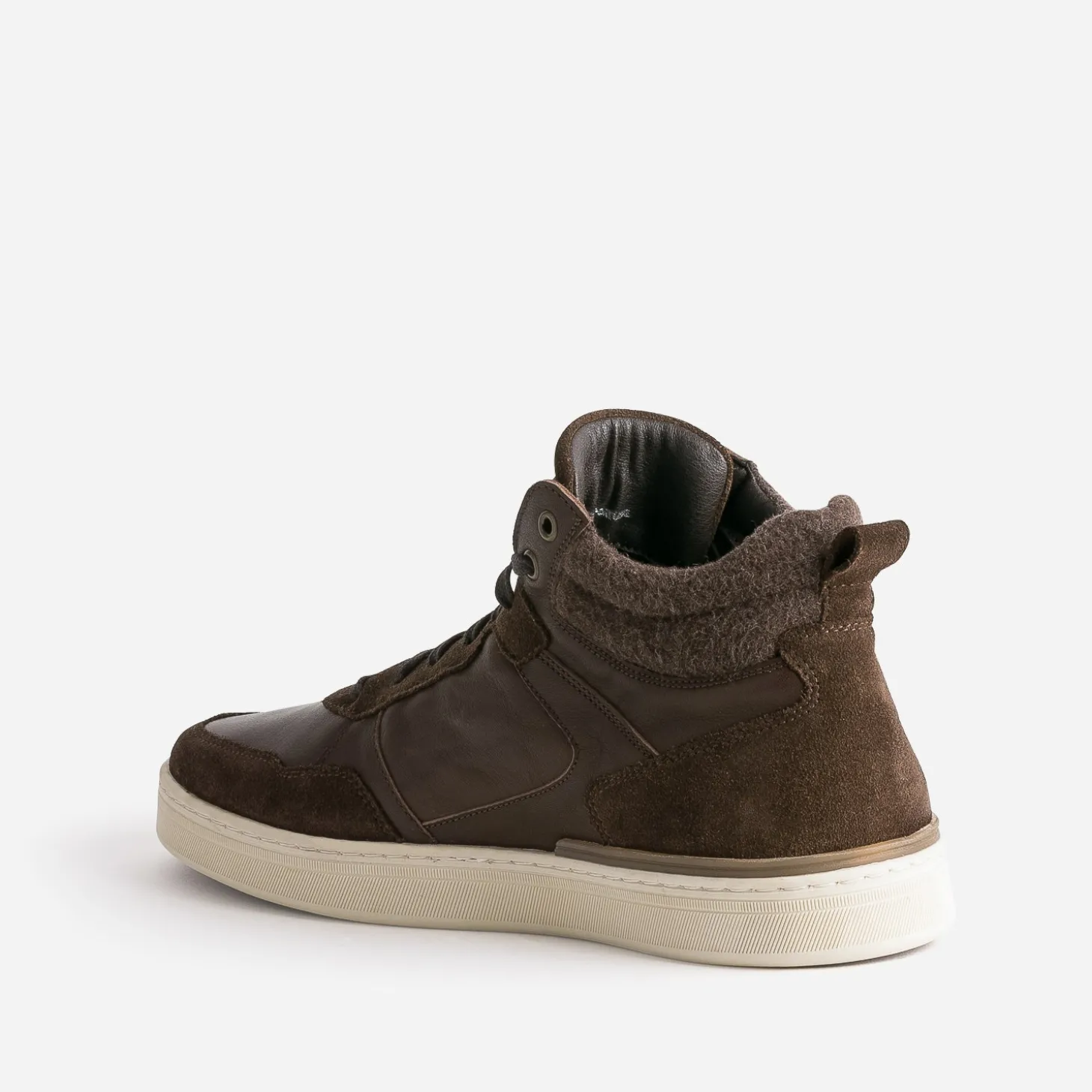 Mix cuir lisse et cuir velours sur la tige, coton feutré sur le haut de la tige matelassé, cette basket pour homme est pensée pour la saison d’hiver. Craquez pour son coloris marron foncé, jusqu’au lacet, à associer à des teintes naturelles, du beige au camel.