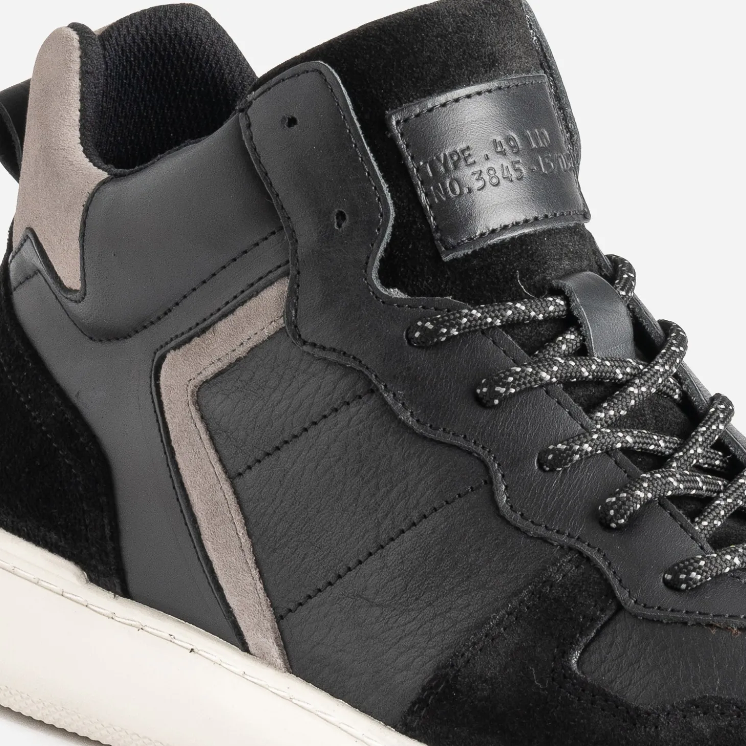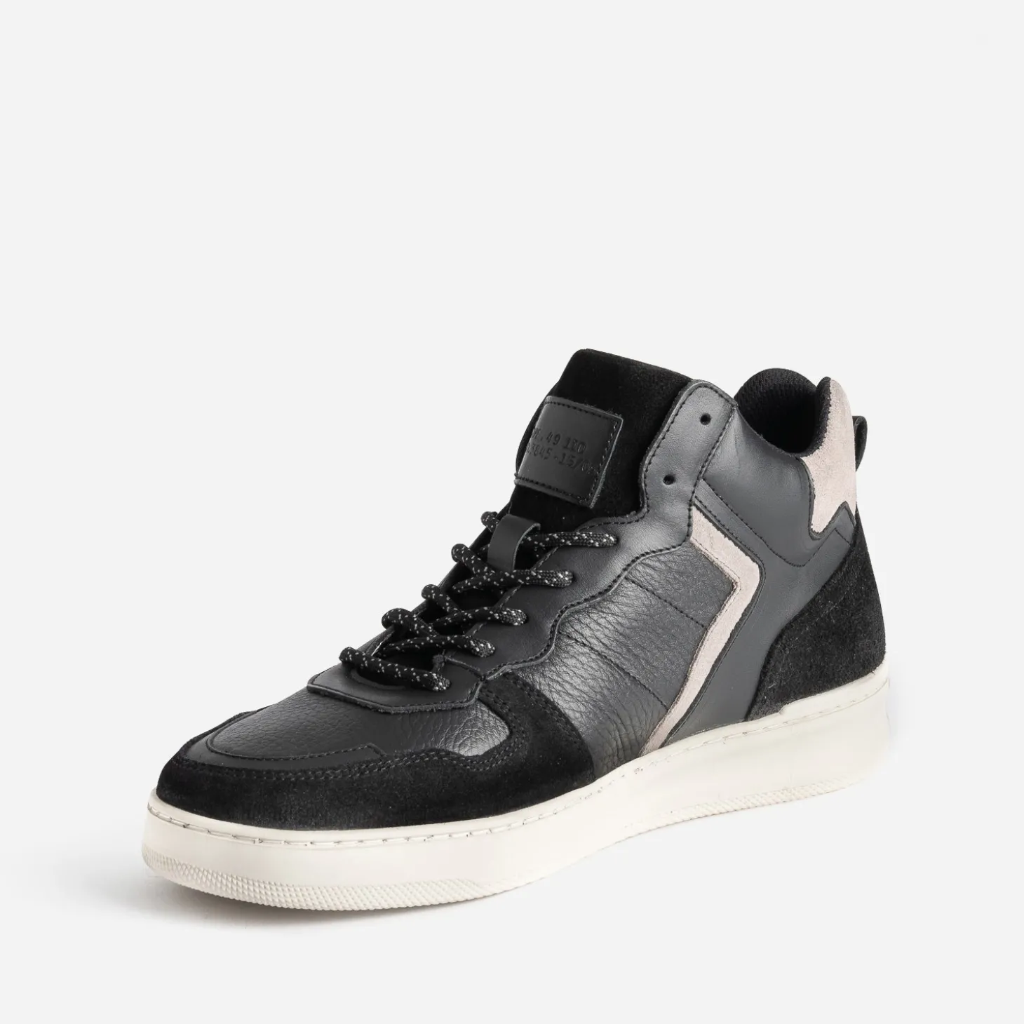 Tige montante en cuir pour cette basket homme. Misez sur la sobriété, avec un modèle noir, souligné de touches gris clair en cuir velours. Pantalon chino ou battle, jogging ou jean, à vous d’inventer le look qui va avec.