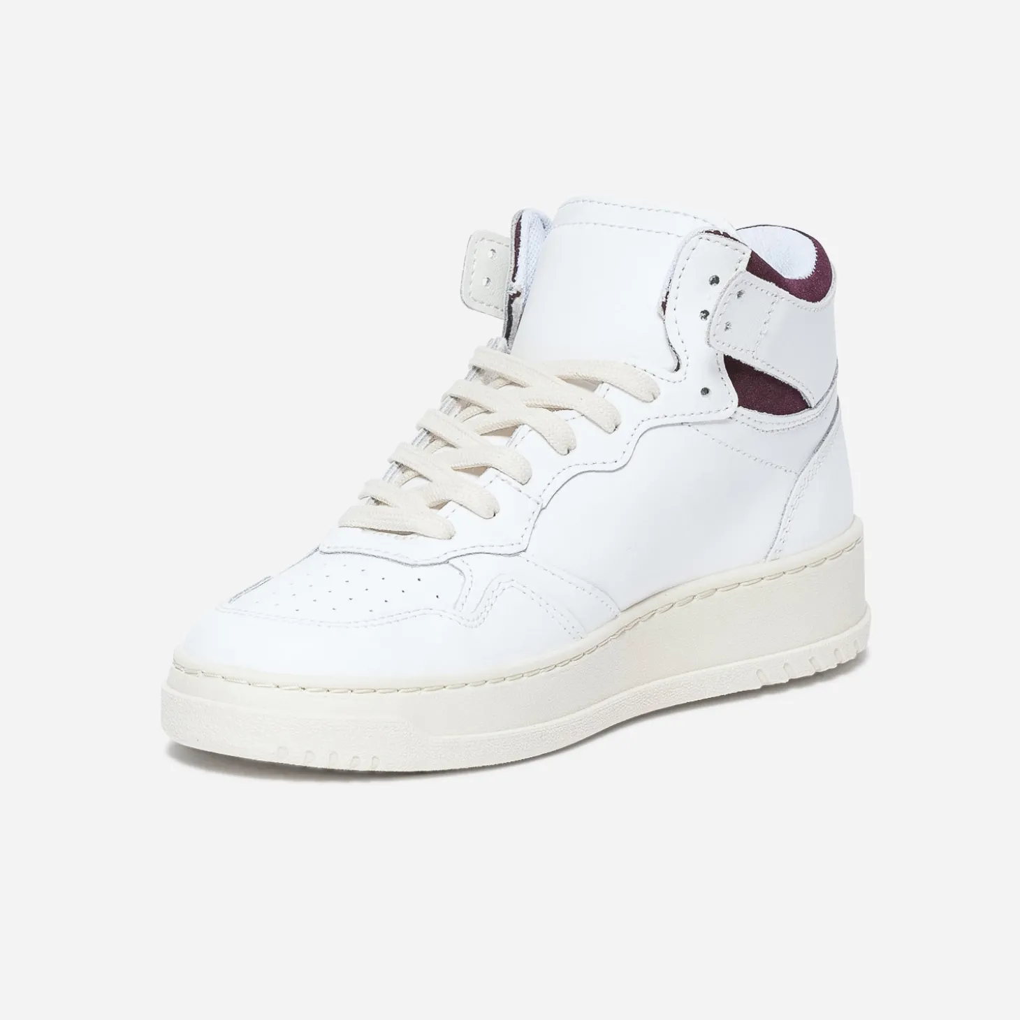 Fabriquée en Italie, en cuir éco-conçu, cette tennis pour femme a tous les atouts pour devenir un must-have. Un design simple et passe-partout. Un cuir blanc, intemporel, et une touche de textile bordeaux en signature. Le tout, sur une semelle très légèrement compensée, blanc cassé. Sa tige haute est aussi à l’aise en combi qu’en jupe, en robe qu’en jean.