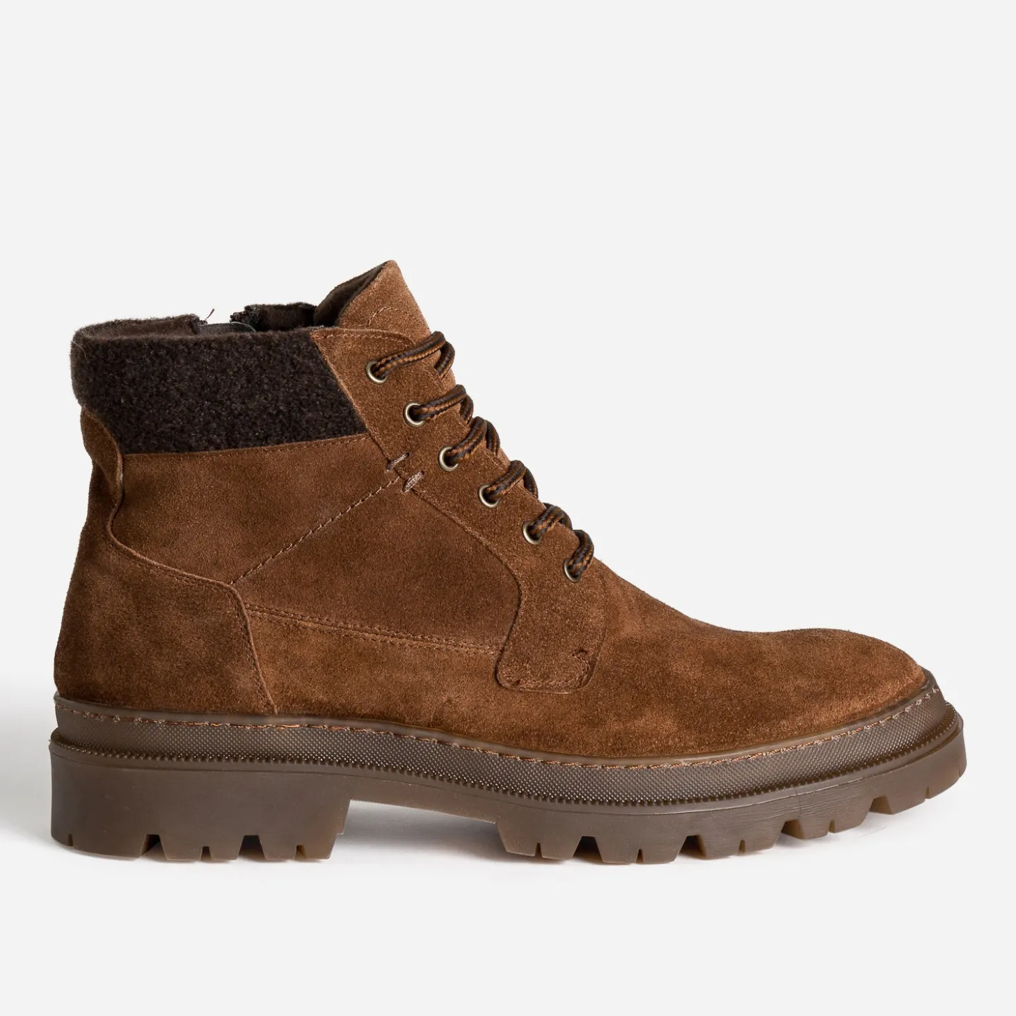 Cognac, c’est le nom de cette variation sublime d’un marron, très chaleureux. Choisi sur un cuir velours, il réchauffe ce boots pour homme d’une élégance évidence. Empiècement fourré, semelle crantée, lacet esprit cordon, il n’en oublie pas pour autant de s’adapter à l’hiver qui approche. Un modèle tendance, qui fait du cardigan en tricot et du pantalon oversize cargo, ses meilleurs alliés de la saison.