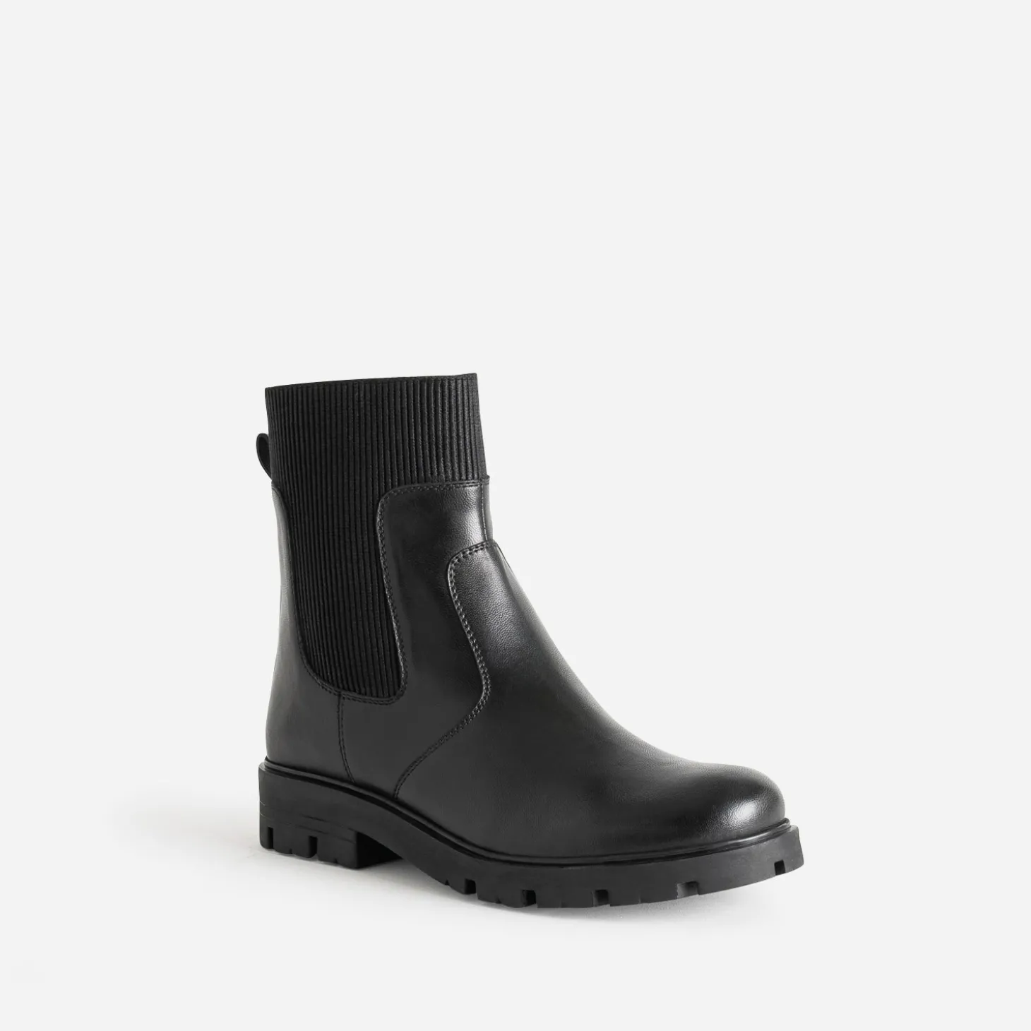 Allure boots par sa tige montante, esprit Chelsea par son empiècement élastiqué. Un modèle hybride directement inspiré du style rock. En cuir lisse noir, il chausse les filles aussi bien avec un pantalon qu’avec une robe.