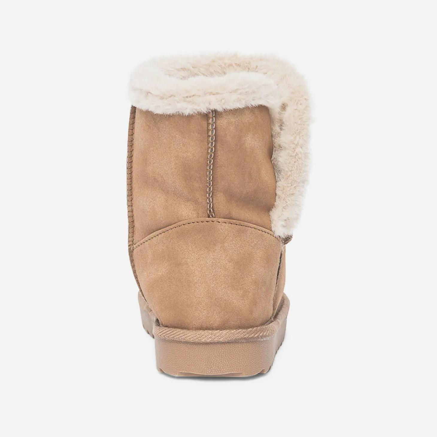 Avis aux frileuses ! Le boots fourré est toujours un must-have de l’hiver, avec doublure en fourrure synthétique et semelle crantée. Un modèle décliné en coloris camel, qui matche aussi bien avec une robe en laine, ultra tendance, qu’avec un gros pull et un jean skinny, en mode vacances.
