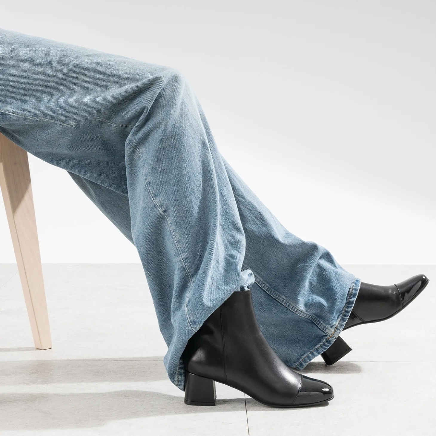 Confirmez votre addiction pour la tendance rétro avec ce boots femme. Talon carré légèrement flare, cuir lisse, coloris noir, il se démarque par un empiècement à finition vernie ton sur ton, posé sur le bout du pied, et par une couture verticale, à l’opposé du zip intérieur. Un modèle résolument chic, à pousser avec un esprit Couture : cardigan bicolore à col rond assez court sur la taille, pantalon large et fluide, noir ou bleu marine.