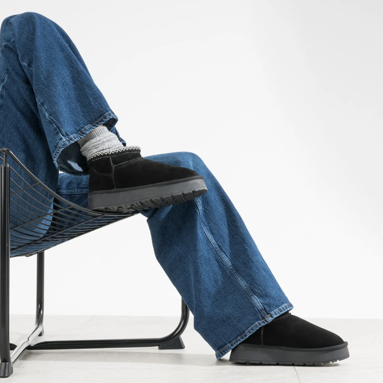 Le boots fourré a ses adeptes. Entièrement fourré, il est confectionné en cuir velours et se décline en couleur noir. Il associe une tige semi-montante à une semelle à plateforme ton sur ton. Il est finalisé par un galon brodé esprit ethnique. Un modèle à combiner avec un look noir et gris, avec pull chaussette et jean large à taille haute.
