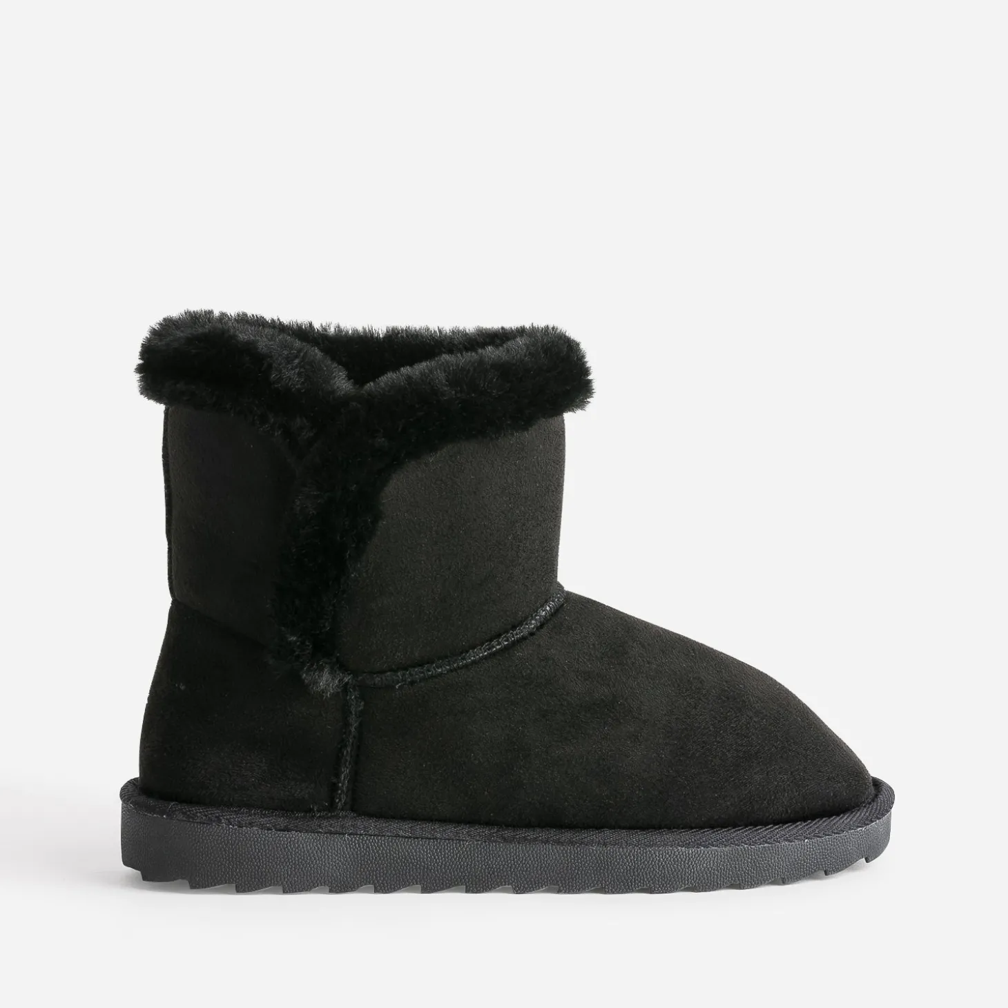 Avis aux frileuses ! Le boots fourré est toujours un must-have de l’hiver, avec doublure en fourrure synthétique et semelle crantée. Un modèle décliné en coloris noir, qui matche aussi bien avec une robe en laine, ultra tendance, qu’avec un gros pull et un jean skinny, en mode vacances.