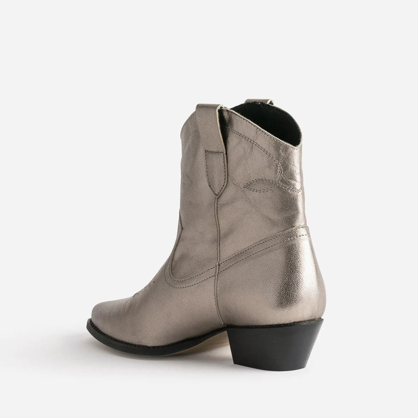 La tendance western gagne en chic. Comment ? Par une confection en cuir, et un coloris doré. Les coutures spécifiques rythment le dessus du pied. Un modèle idéal autant avec un jean qu’avec une robe.