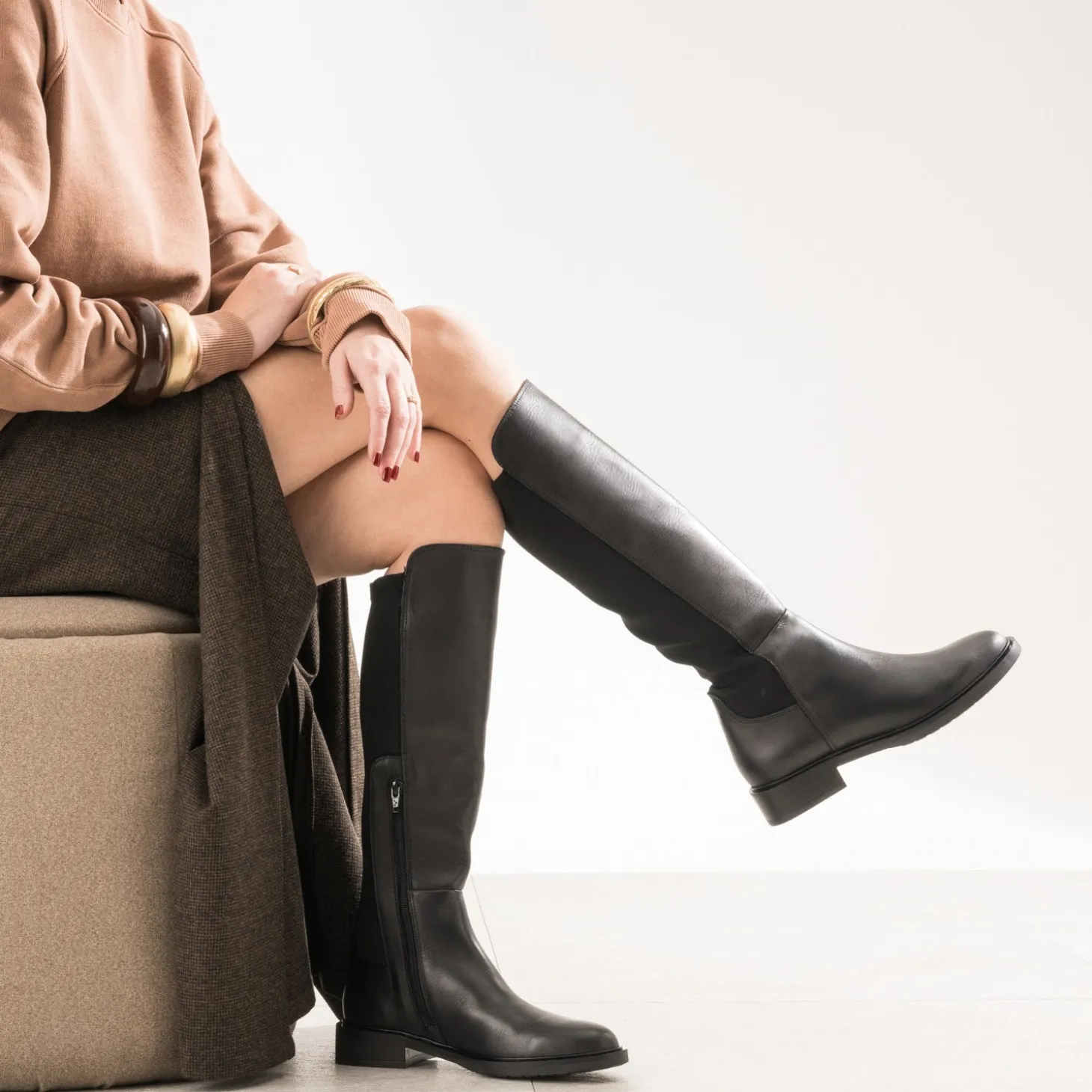 65% cuir lisse, 35% polyester souple. C’est la recette réussie, proposée par cette botte pour femme. Son point fort, c’est sa tige bi-matière, qui permet un ajustement parfait sur le mollet. Les deux matières noires jouent le ton sur ton, pour plus de style et d’élégance. Le zip intérieur facilite le passage et le maintien du pied. Un modèle au design moderne, ravi de s’associer avec les robes et jupes de la saison.