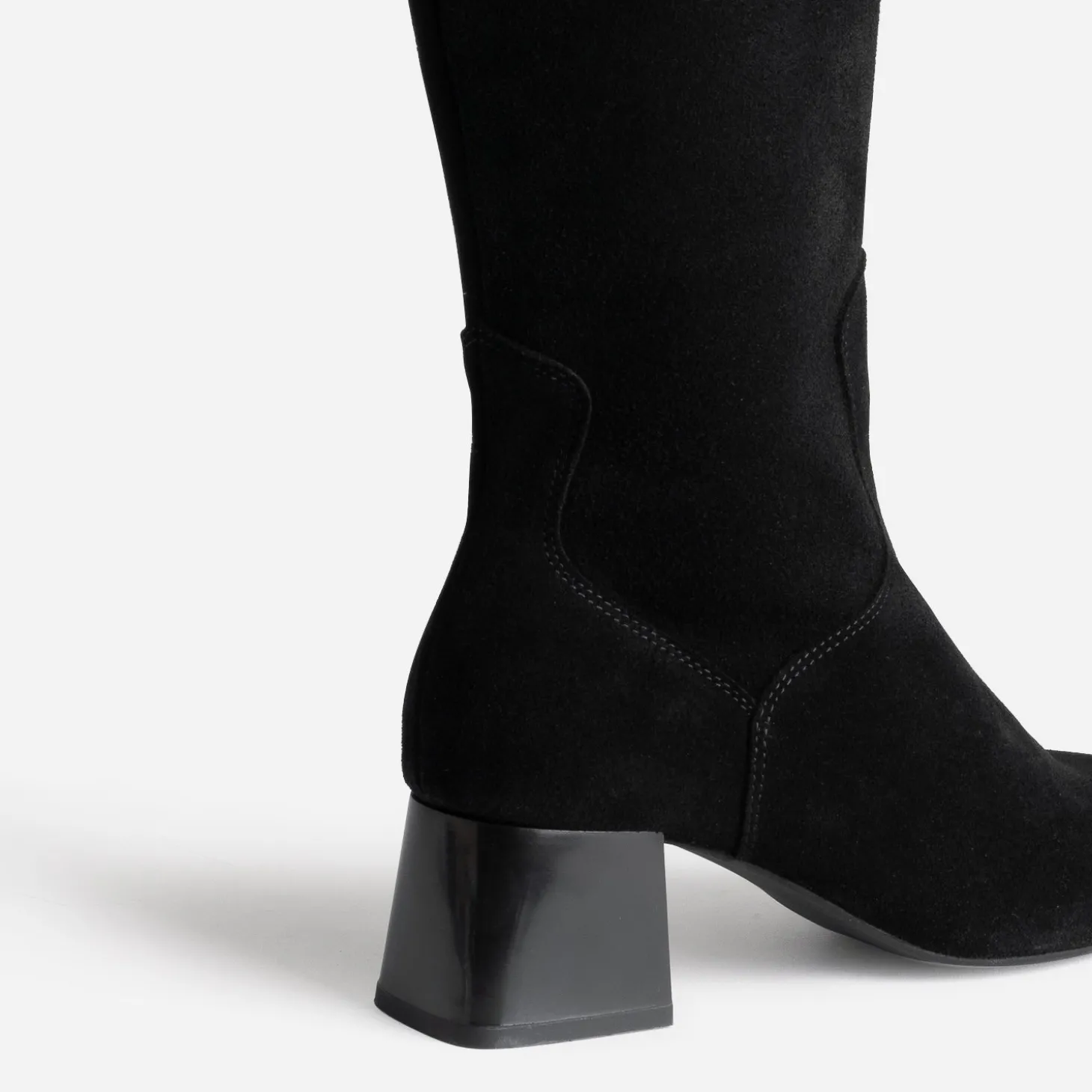 La botte est un véritable investissement sur le long terme. Choisissez-la dans un coloris intemporel et sobre, dans une belle matière, avec un talon confortable. L’objectif ? Ne pas vous lasser et aimer les porter, saison après saison. Cette botte noire en cuir velours ultra souple, montée sur talon carré de 5 cm, répond, réellement, à tous les critères. Sortez vos plus jolies jupes et robes, avec des collants noires, de couleur ou fantaisie, selon vos envies.