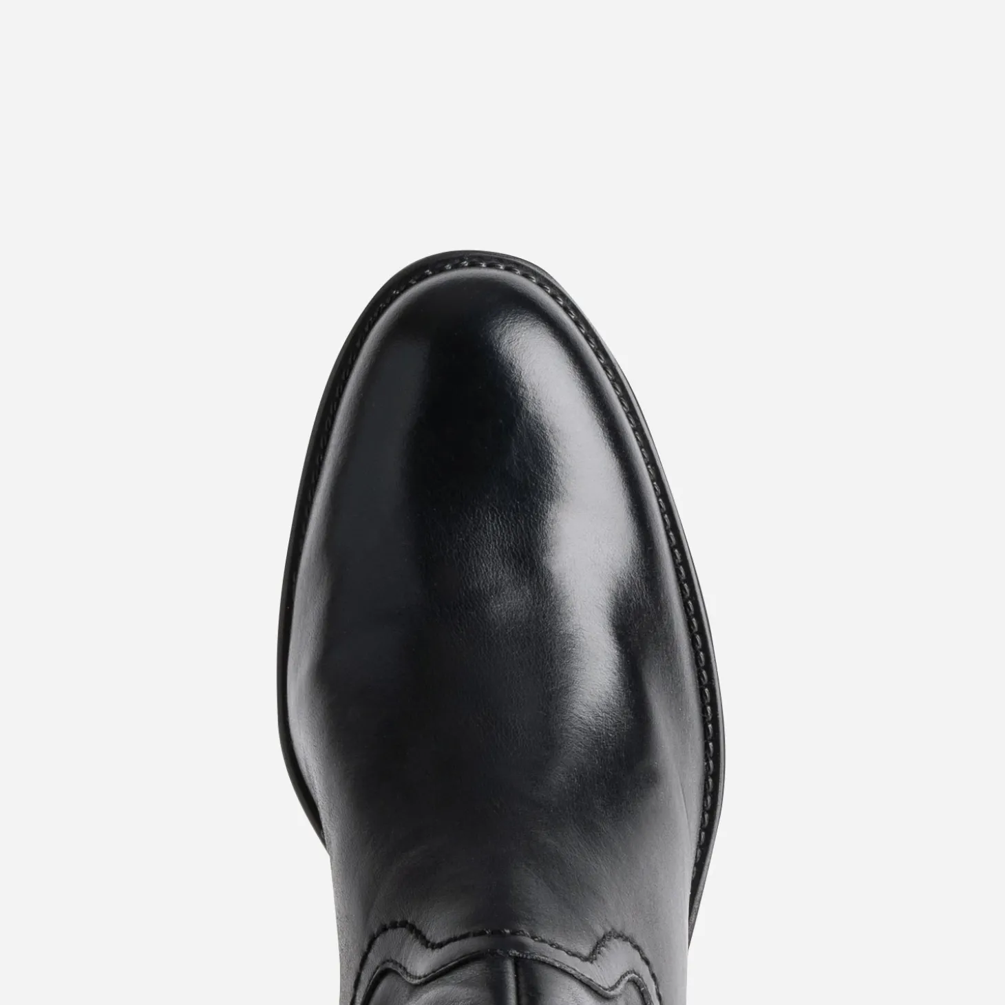 Inspirée des bottes des cavaliers, cette nouvelle proposition a tout pour vous plaire. En cuir noir, cette botte pour femme reprend les codes habituels, notamment la couture placée sur le haut de la tige. Elle est montée sur un talon légèrement haut, sans perdre en confort ni en stabilité. Un modèle au style minimaliste et intemporel, que vous aurez plaisir à porter, saison après saison.
