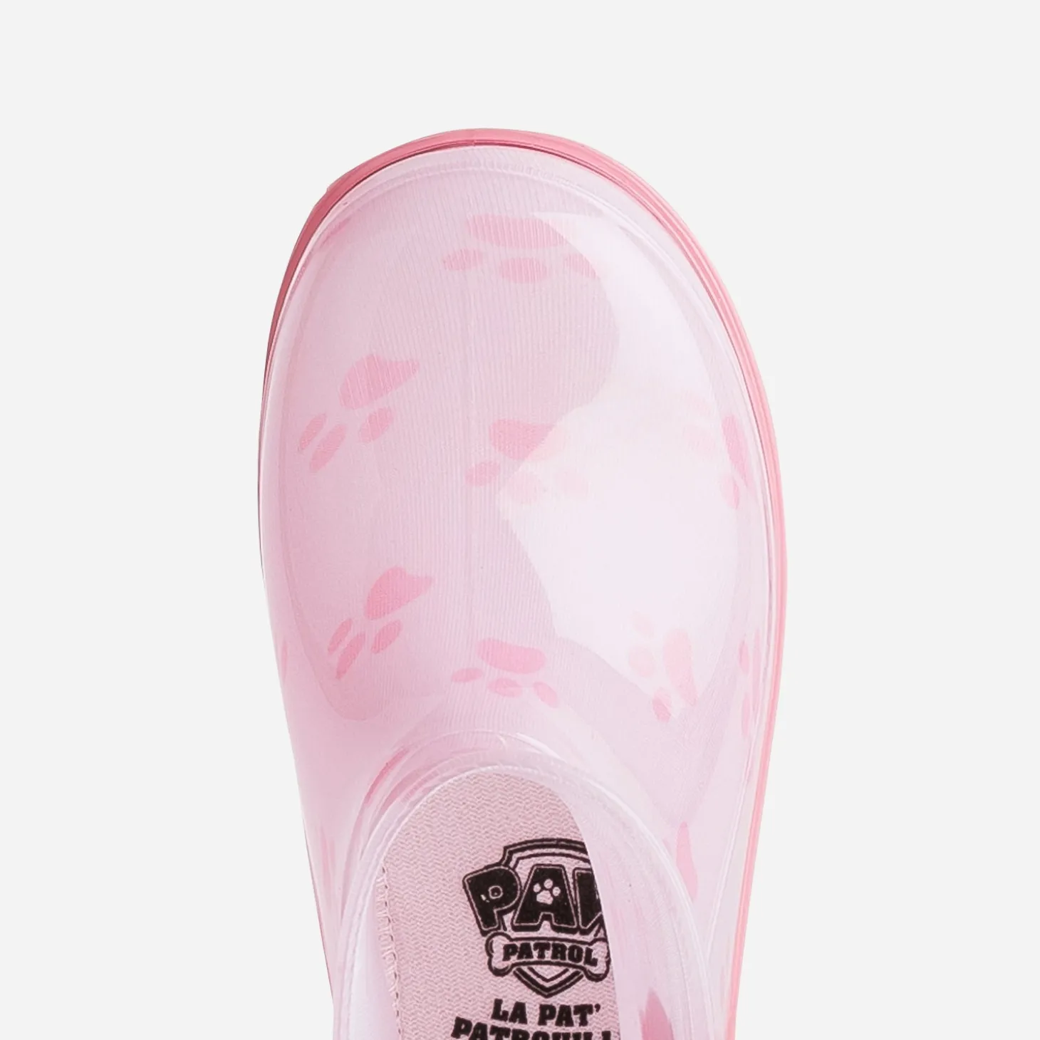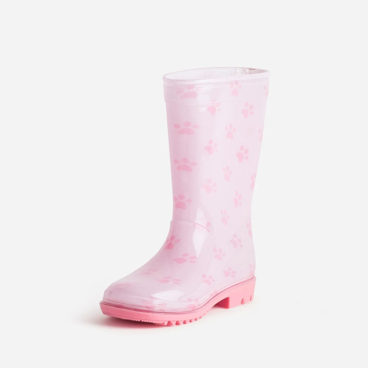 L’alliée, de votre fille, les jours de pluie ? C’est la botte en caoutchouc ! De couleur rose, elle s’anime d’empreintes de pattes contrastées et présente, sur le côté, un portrait en duo de Stella, le cocker, et Everest, le husky. La semelle crantée permet une adhérence optimale sur le sol.