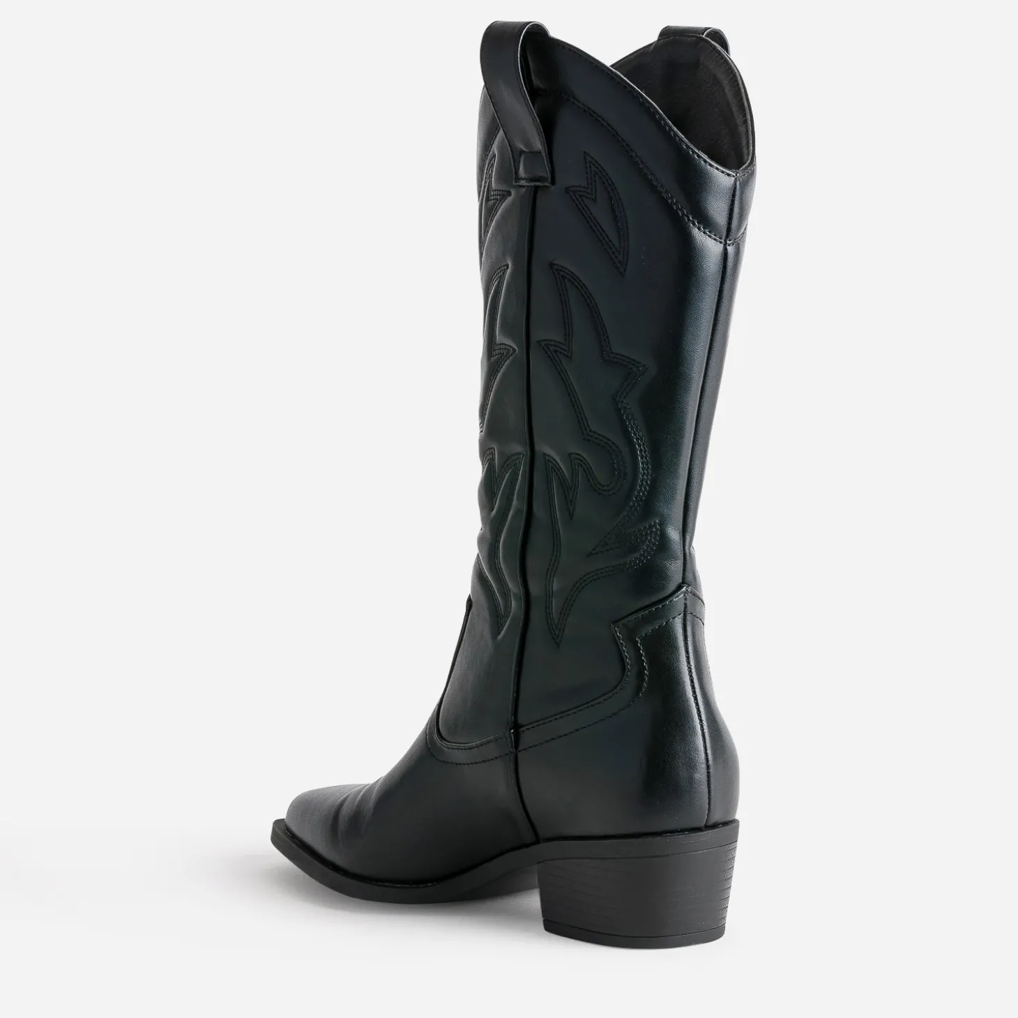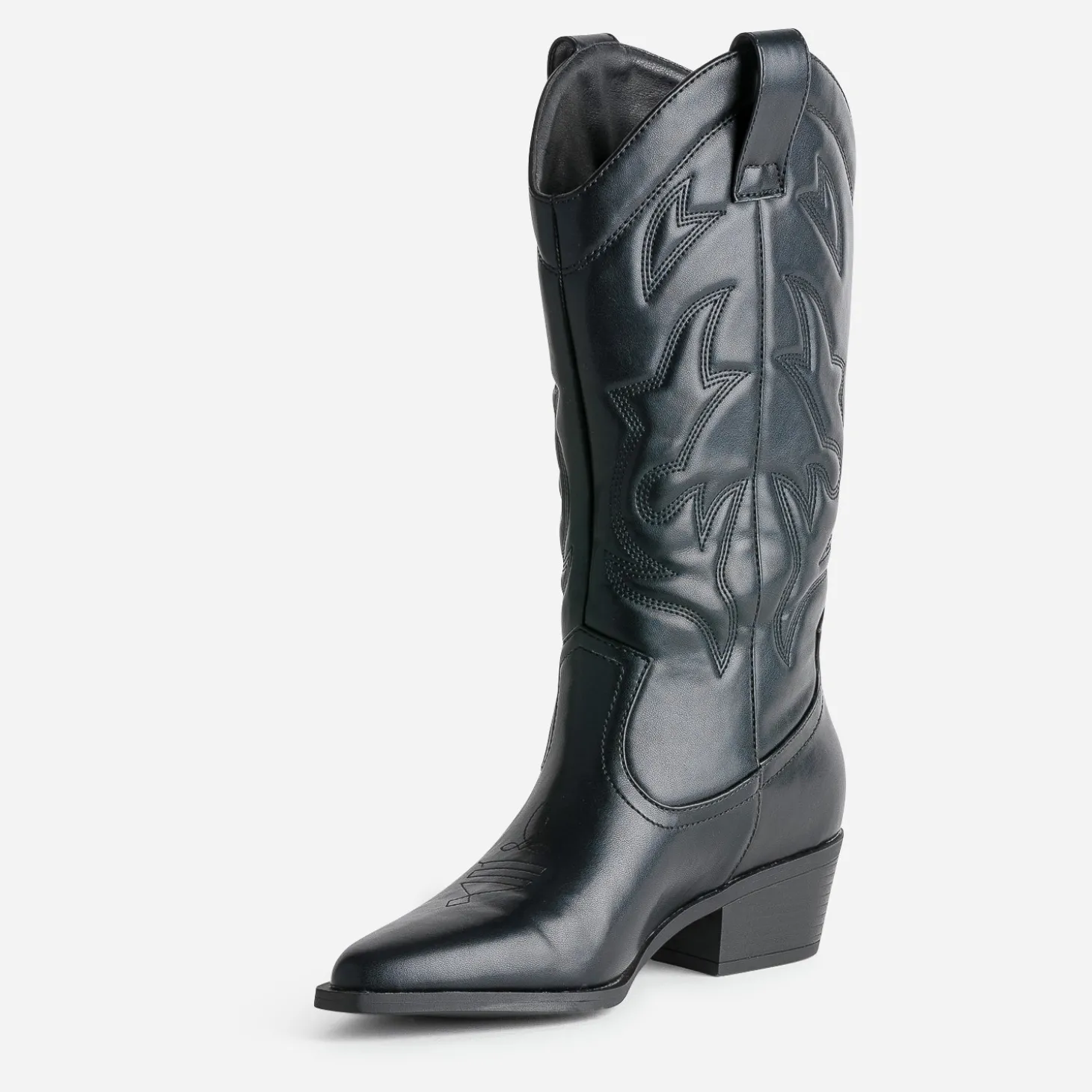 Rythmée de surpiqûres spécifiques, sur le dessus du pied et sur la tige, cette botte pour femme s’inspire clairement de la santiag. Bout pointu, talon bottier, elle s’enfile et se retire en une seconde. En matière synthétique lisse, elle s’autorise une déclinaison entièrement noire. Avec une chemise en jean, avec une jupe courte ou un slim, elle assure une touche rock, sans précédent.