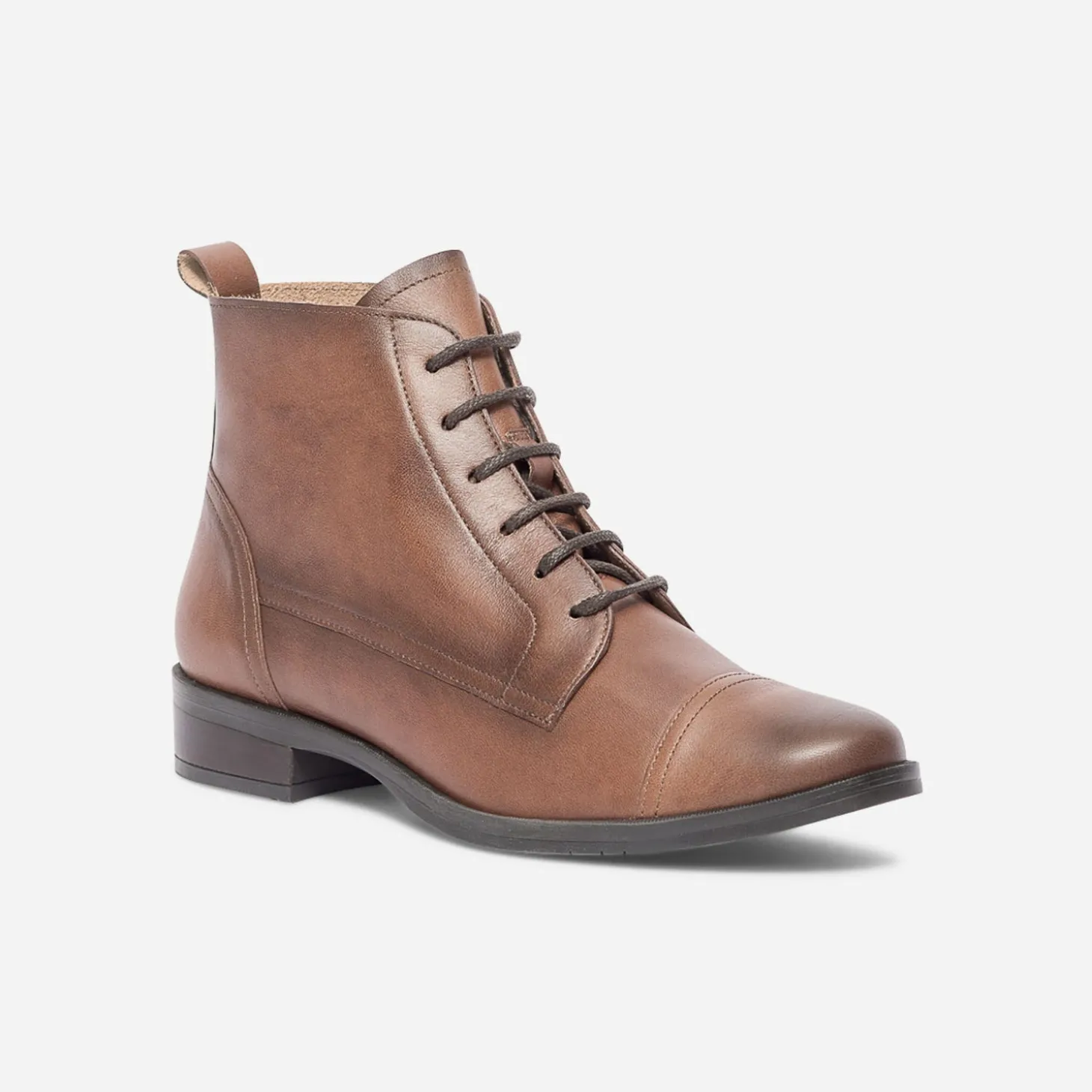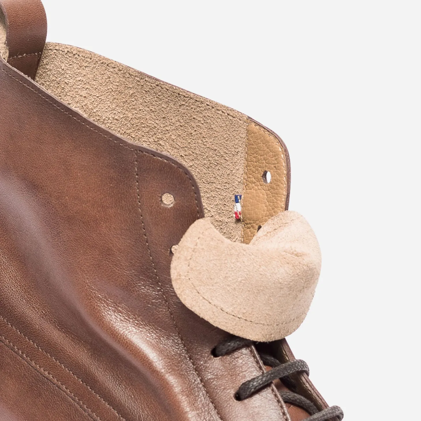 Portée par la tendance bc-bg de la saison, la bottine à lacet fait un retour remarquable et remarqué. En cuir cognac, elle présente un talon carré de 3 cm, ultra confortable au quotidien. Sa tige montante est rythmée de 12 œillets et d’un lacet rond et enduit spécifiques au modèle. A l’intérieur, doublure et première en cuir garantissent un confort optimal, renforcé par une semelle amovible reconnue pour ses propriétés d’amorti, de respirabilité et de durabilité.