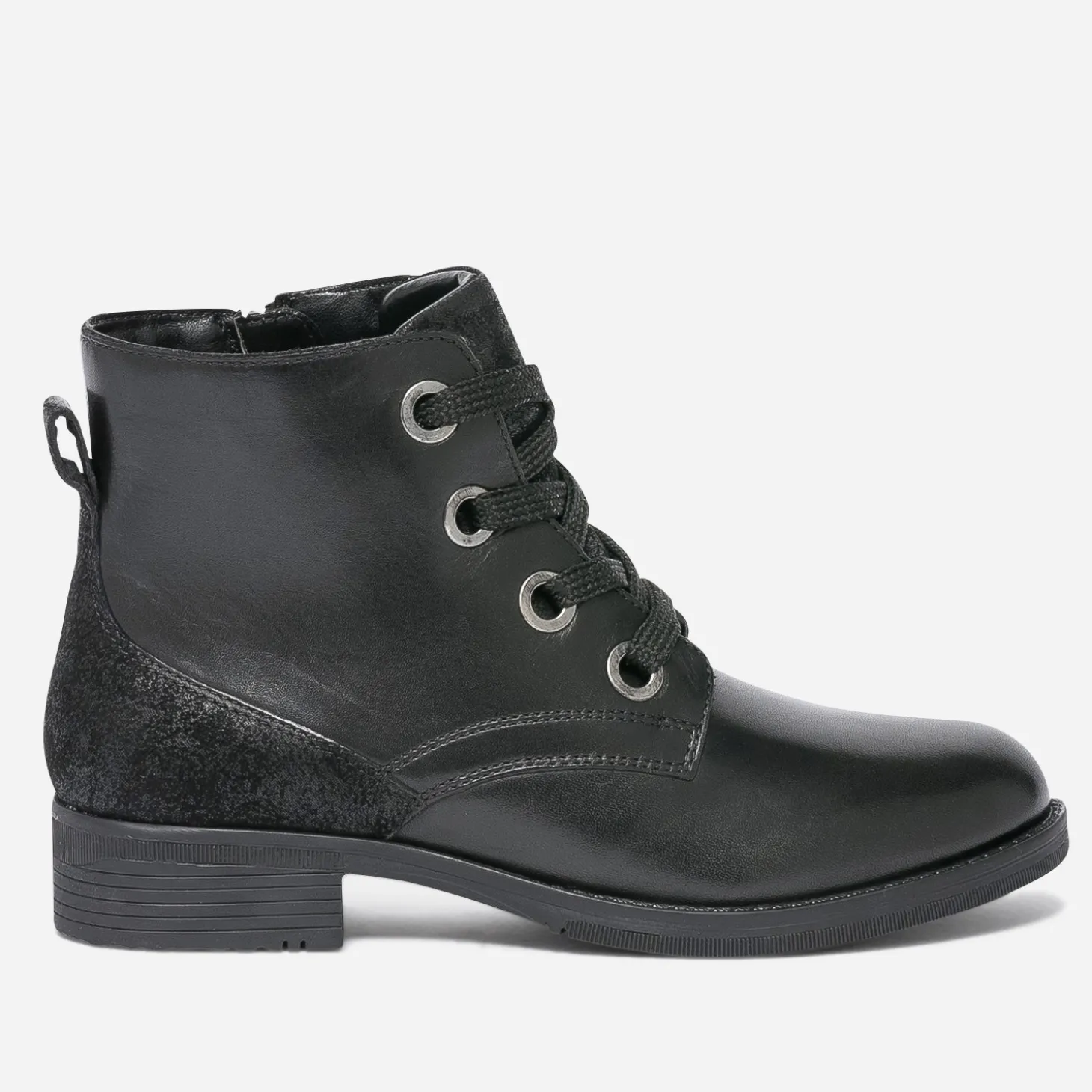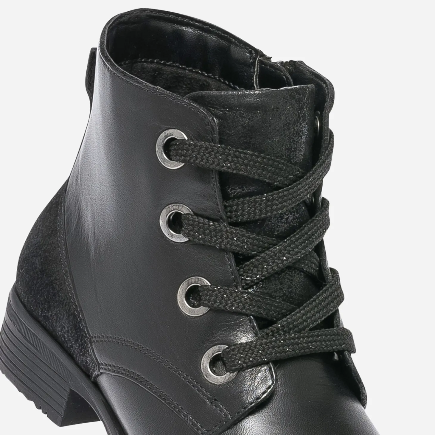Rock ou militaire, ou même preppy, la bottine pour fille a le pouvoir fou de s’adapter à beaucoup de styles. Conçue en cuir noir, elle présente un empiècement en cuir velours sur la languette et le contrefort et se ferme par un lacet pailleté et un zip intérieur, pour faciliter l’autonomie des plus petites. Avec un perfecto, une combi-pantalon ou une robe en tulle, elle voudra les mettre à ses pieds tous les jours.