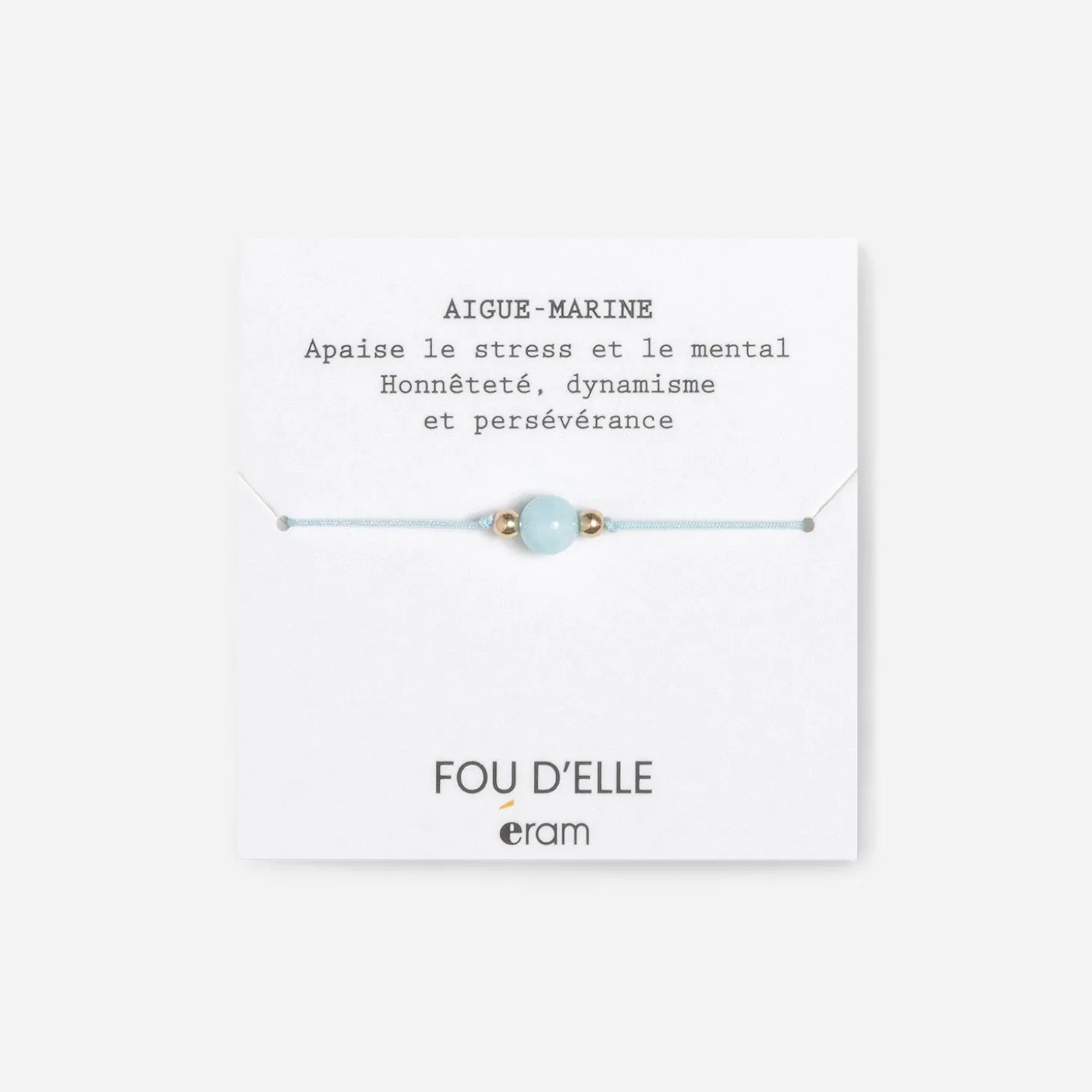 Pour apaiser le stress et le mental, faire preuve d’honnêteté de dynamisme et de persévérance, misez sur l’aigue-marine. Une pierre à placer sur le poignet, grâce à ce joli bracelet dans les tons bleu clair, pour apporter plus de joie, de créativité et libérer des émotions enfouies. Prête à essayer ?