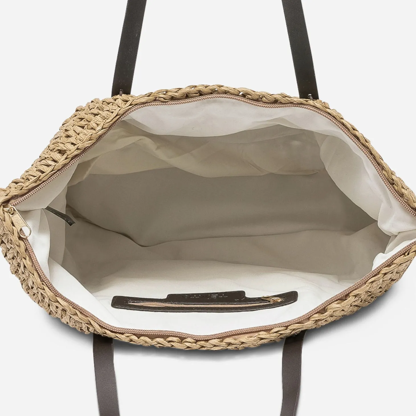 Cabas beige effet raphia à patch noix de coco