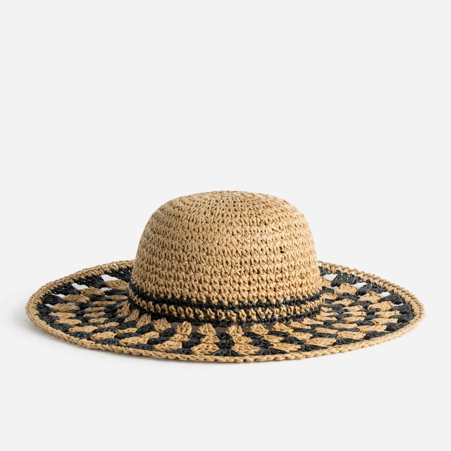 Pour vous protéger du soleil, sans compromettre votre style, faites confiance à la capeline. En paille papier, elle associe le beige foncé et le noir, dans un tressage ajouré. Un accessoire plein été, à imaginer avec un tailleur 2-pièces en lin, des mules plates, un sac à main en paille noire.