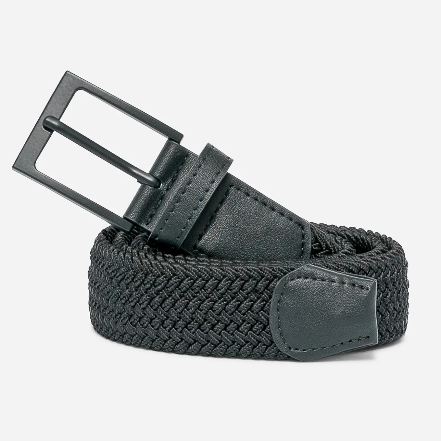 Les accessoires prennent, eux-aussi, leur quartier d’hiver. La ceinture revisite ses classiques par un textile noir tressé, avec finitions matière synthétique lisse et boucle rectangulaire en métal noir. Un modèle homme à glisser dans les jeans ou pantalons chino, avec un polo et un cardigan col V.