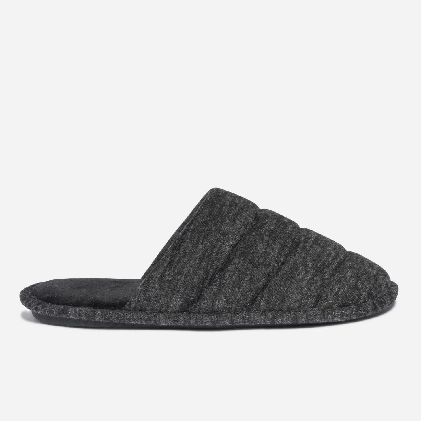 Un des petits bonheurs facile d’accès au quotidien, c’est se mettre en chaussons. Choisissez-le forme mule, pour pouvoir y glisser vos pieds sans contraintes. En textile gris, il présente de larges surpiqûres pour un effet matelassé étudié, sur le dessus du pied. N’essayez pas d’y résister.