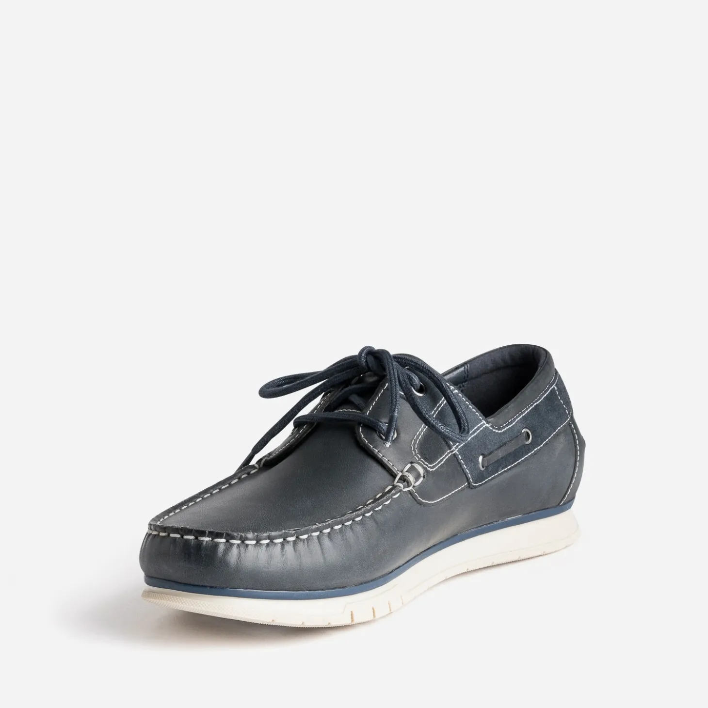 Avis aux adeptes de la chaussure-bateau. Bleu marine sur cuir lisse, elle garde ses surpiqûres contrastées et se réinvente par une semelle légèrement crantée et une semelle première amovible, pour accueillir une semelle orthopédique adaptée. Elle se ferme par un lacet ton sur ton. Parions que vous n’allez pas la quitter de l’été.