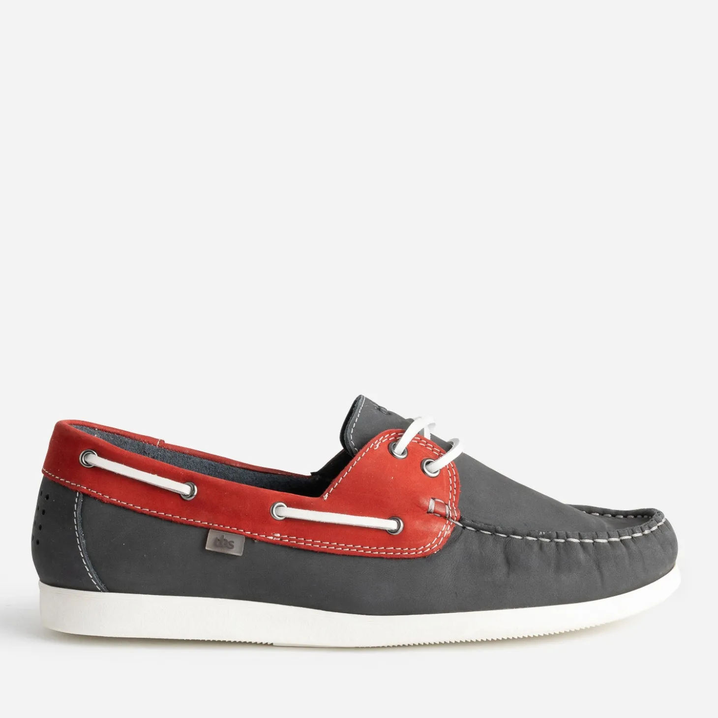 Modèle emblématique et indémodable, la chaussure-bateau chausse les hommes en quête d’un style casual. En cuir nubuck bleu marine, elle est rehaussée de quartiers rouge foncé, soulignée de surpiqûres et de lacets en cuir blanc. Intemporelle, elle est l’alliée des marinières et des bermudas battle.