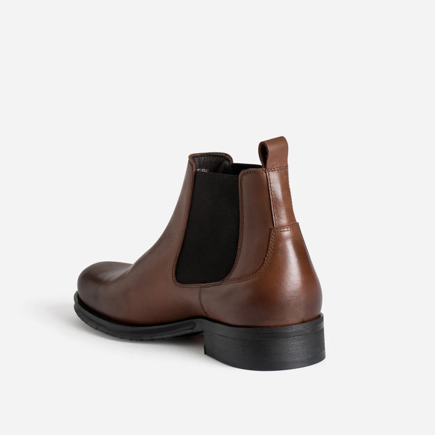 Impossible de faire l’impasse sur le Chelsea boots. Reconnaissable à sa forme allongée avec bout amande et ses élastiques latéraux, il se décline en coloris cognac, sur un sublime cuir lisse. Un modèle à moderniser avec un look monochrome bleu marine ou noir, pull à col roulé et jean droit ou slim, dans un esprit urbain affirmé.