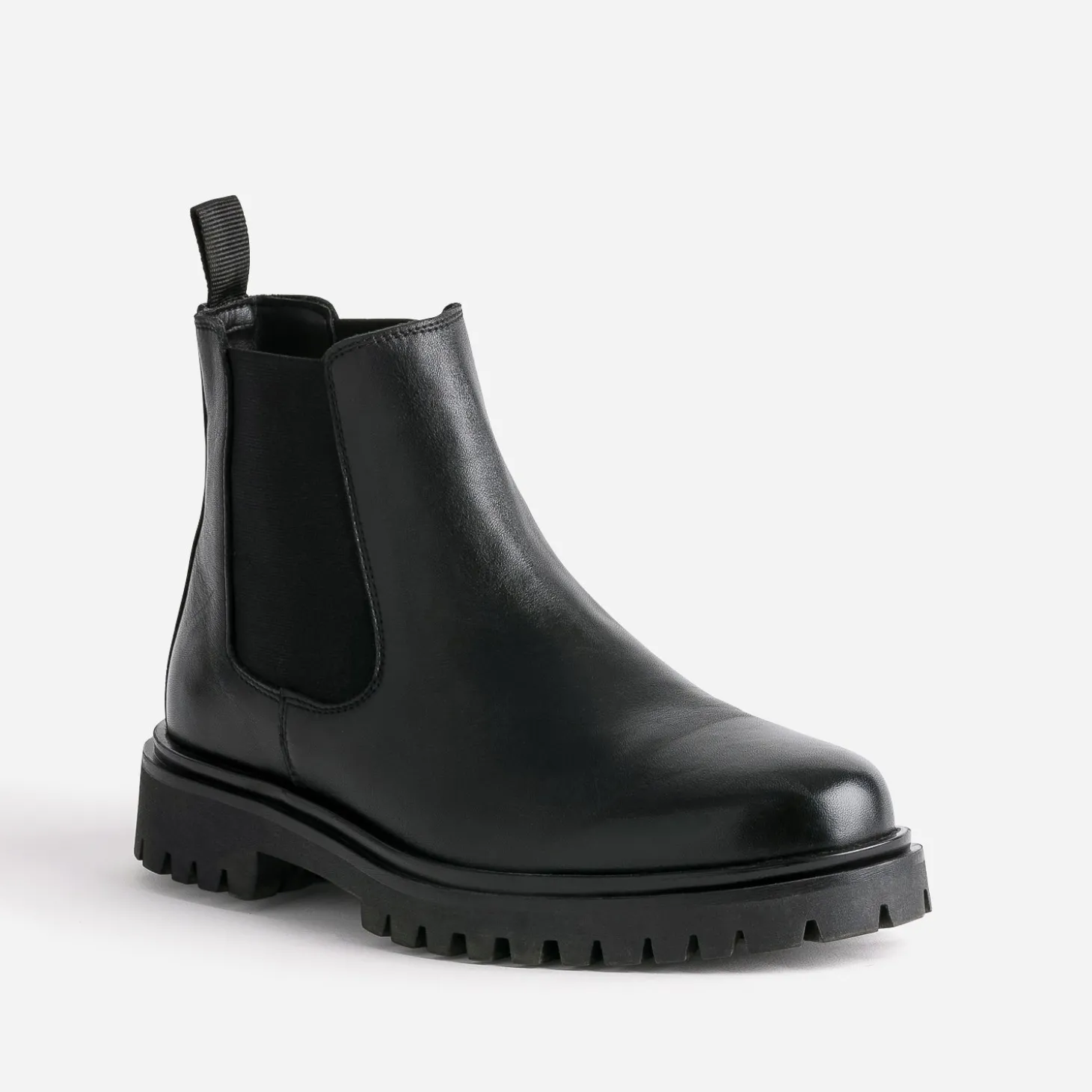 La tendance de la semelle épaisse et crantée s’invite dans le Chelsea boots pour homme. En cuir noir, il prône le monochrome, de la tige à la semelle, en passant par les élastiques latéraux, pour gagner en style. Adoptez son esprit rock, avec une chemise à carreaux et un jean slim.