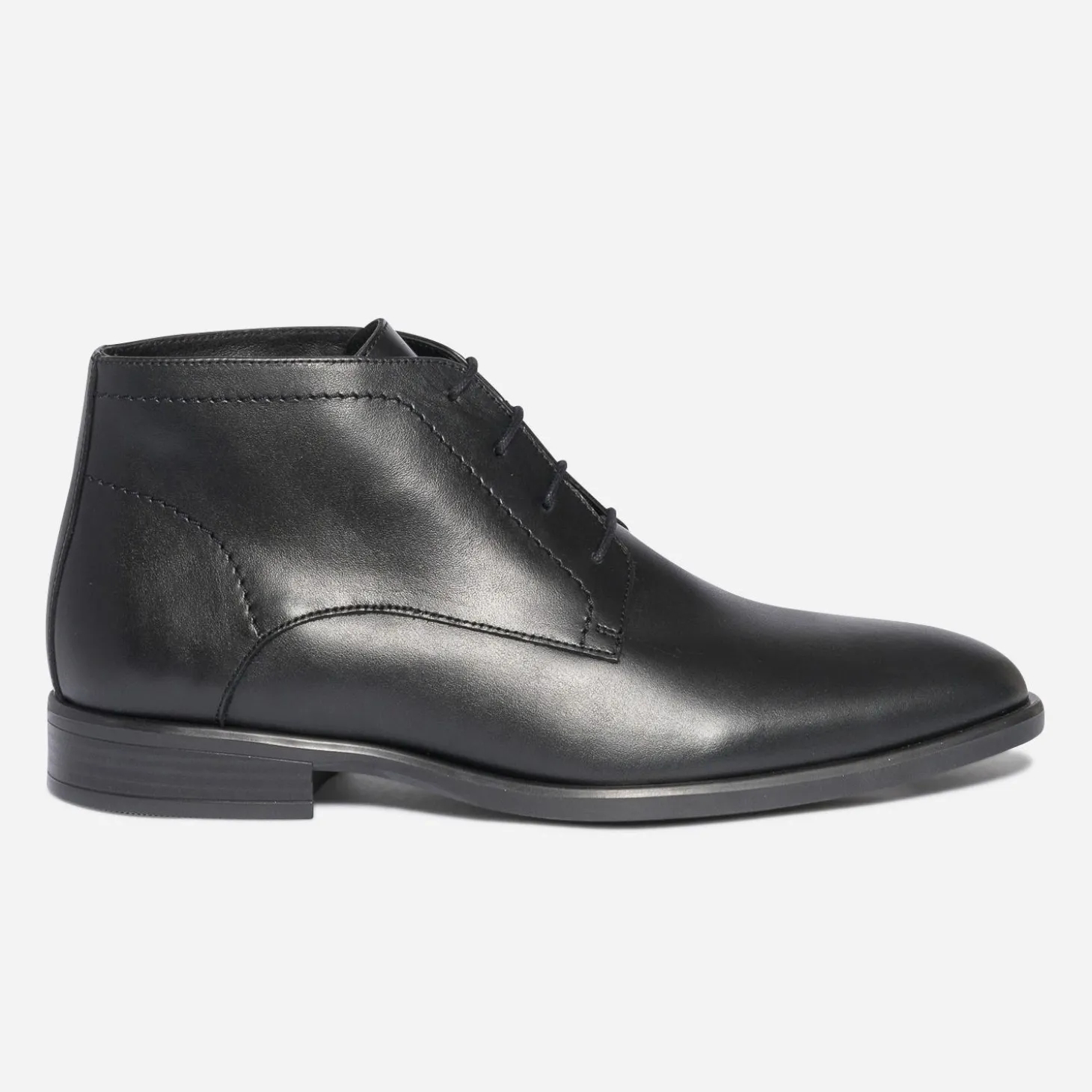 Le Chukka boots est un nouveau modèle masculin, qui mérite d’être essayé. Il est confectionné en cuir noir et se démarque par une tige plus souple. Doublure en cuir, première en cuir, il promet un confort absolu. Un modèle parfait, avec un look formel, comme le costume noir et la chemise blanche.
