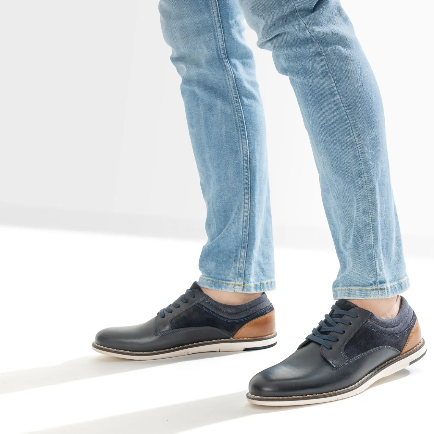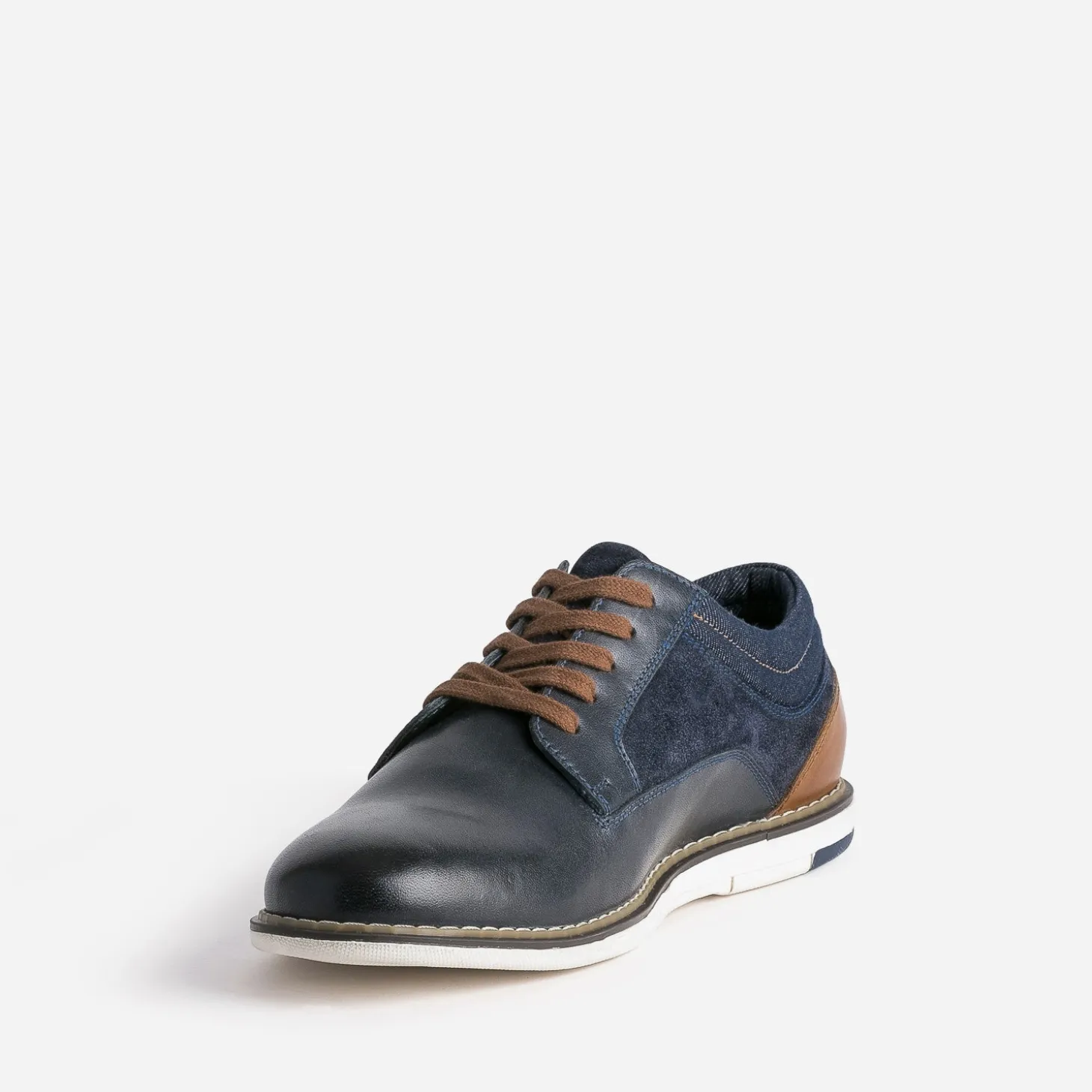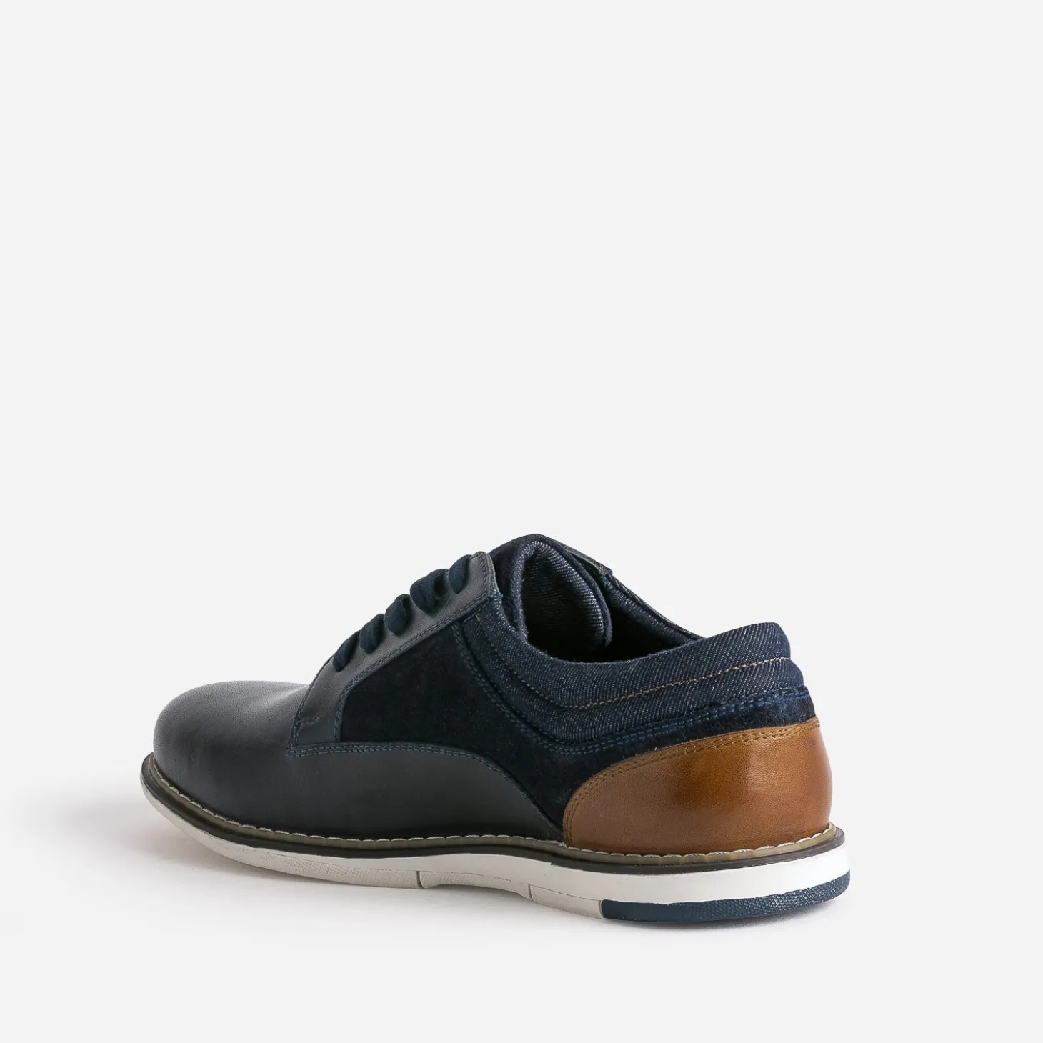 Derby confort marine mix cuir et textile