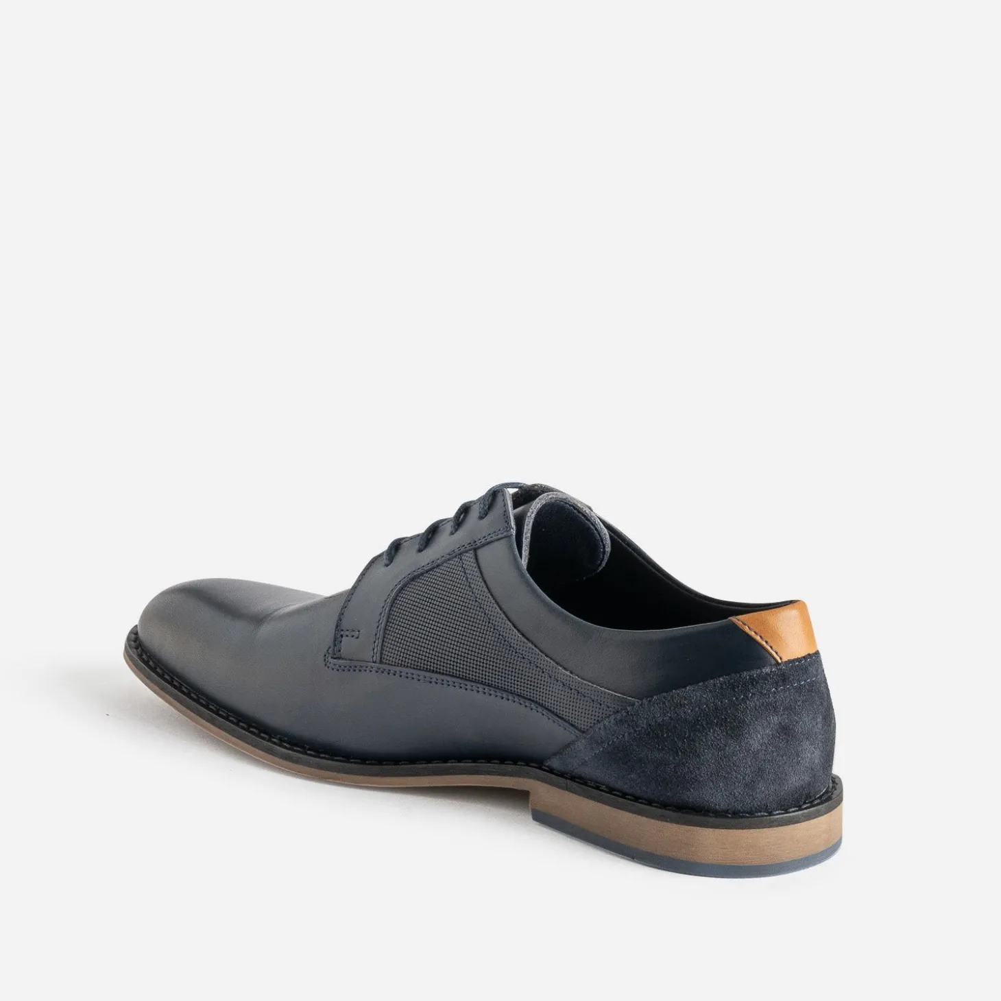 Cuir marine, cuir velours marine sur le contrefort, détails camel sur la semelle, fermeture par un lacet ciré : faites confiance à ce derby homme. Un modèle ni trop chic, ni trop casual, pour accompagner vos looks du quotidien.