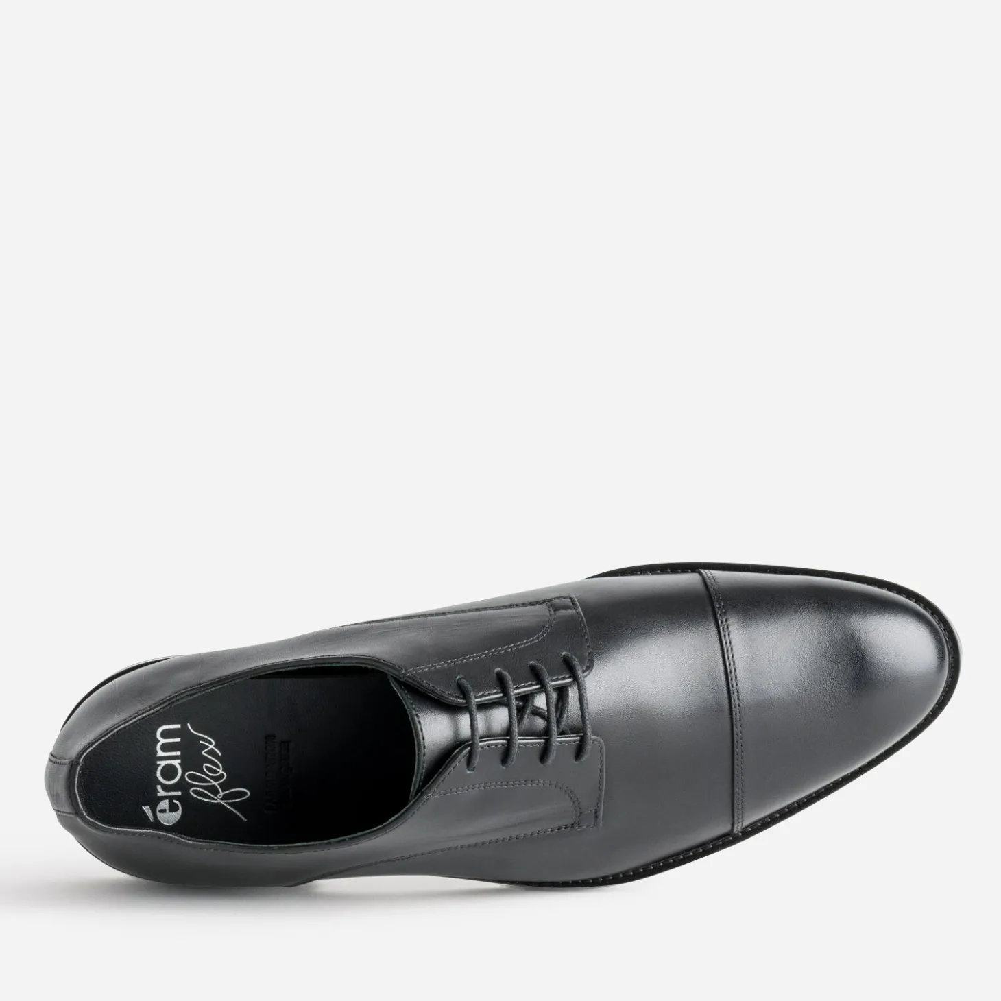 Le derby confirme son statut de soulier incontournable du vestiaire masculin. En cuir lisse noir, il est finalisé par un bout droit, qui renforce l’élégance de sa ligne. Un modèle à réserver avec un look formel, costume noir ou gris par exemple.