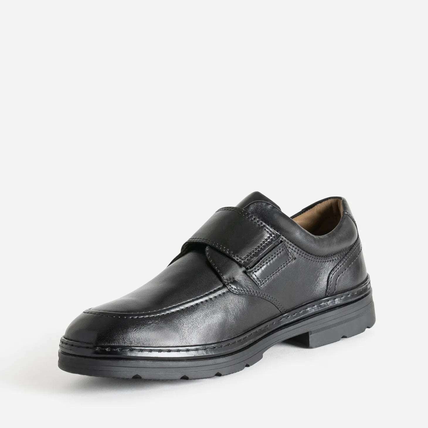 Le derby pour homme gagne en confort par : 1. sa matière, du cuir souple, sur le dessus et la semelle première. 2. Par sa fermeture par large scratch. Coloris noir, ce modèle est étudié pour être porté au quotidien.