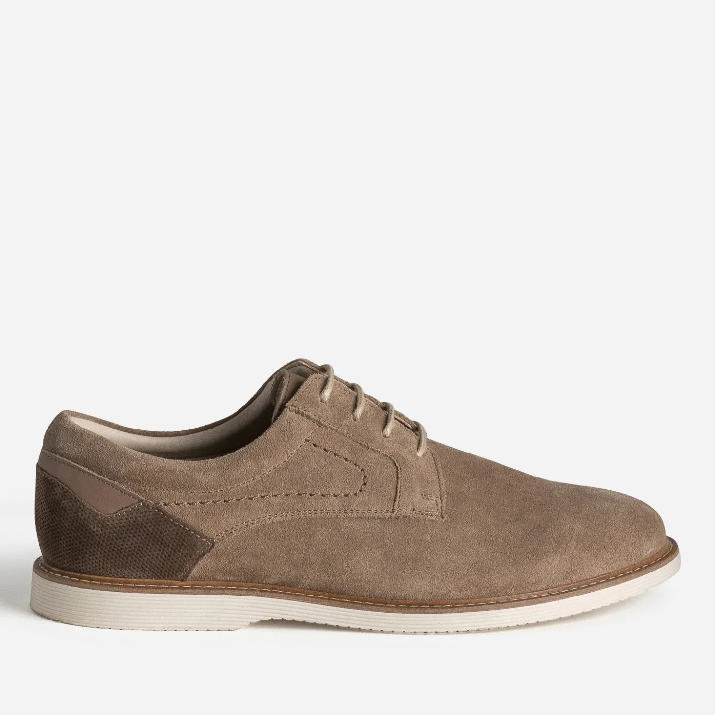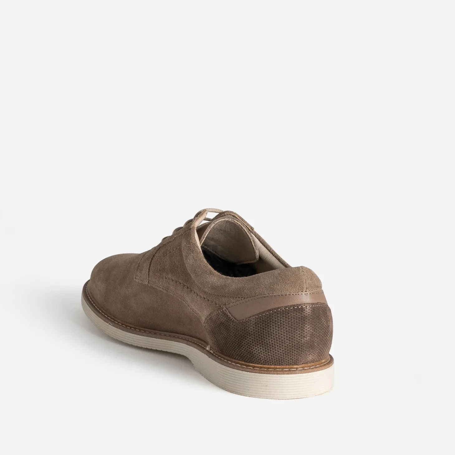 Focus sur le derby pour homme. Habituellement réservé aux costumes et tenues formelles, il s’offre une version plus décontractée. D’abord par sa confection en cuir velours. Ensuite par son coloris taupe. Enfin par sa semelle confort rainurée. Un modèle à privilégier avec des nuances de beige et gris, en polo ou chemise, en pantalon chino ou bermuda.