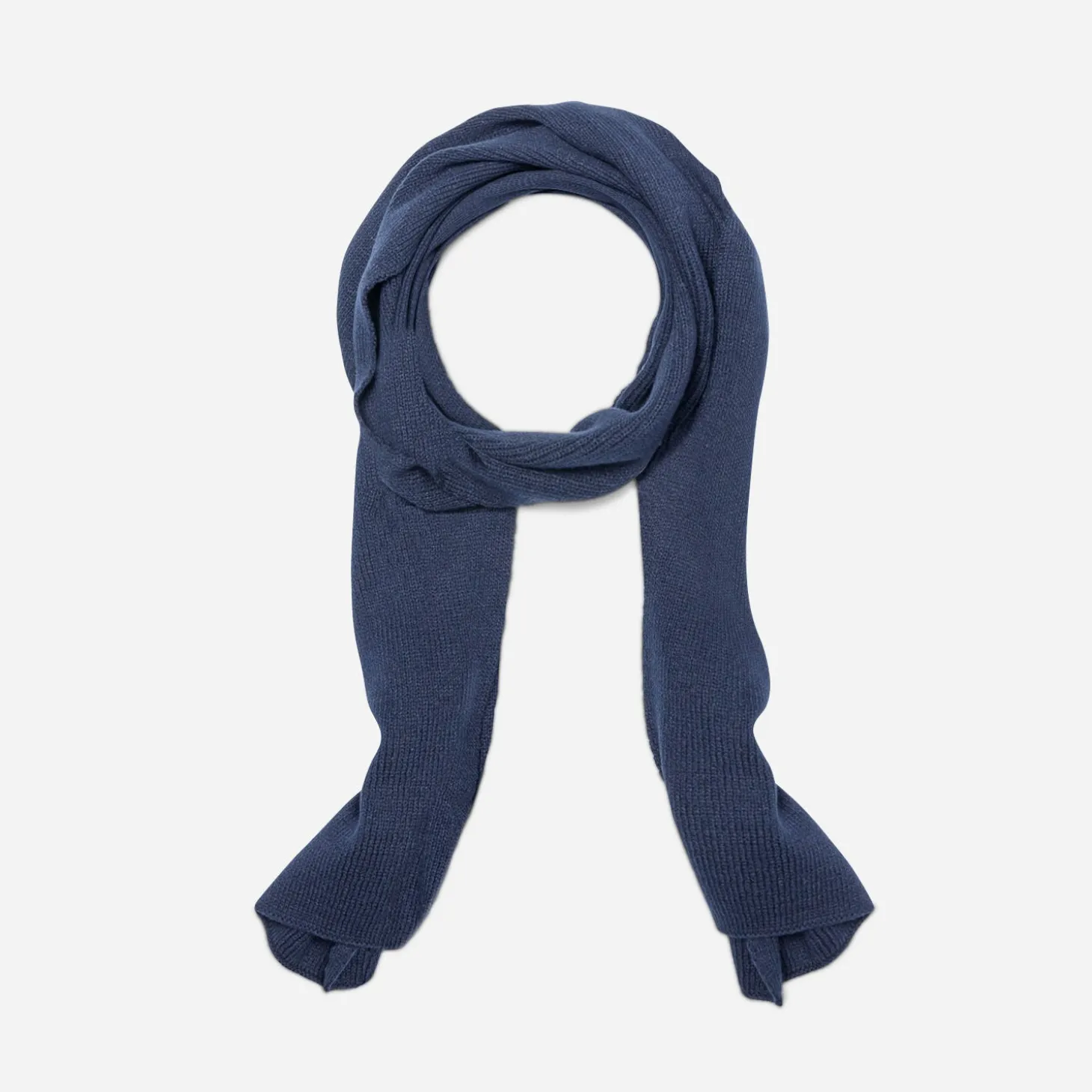 Réchauffez vos looks d’hiver avec sobriété. Posez l’écharpe en tricot bleu marine sur vos costumes en ton sur ton, ou sur un pull col roulé beige, un jean brut et une parka marine.