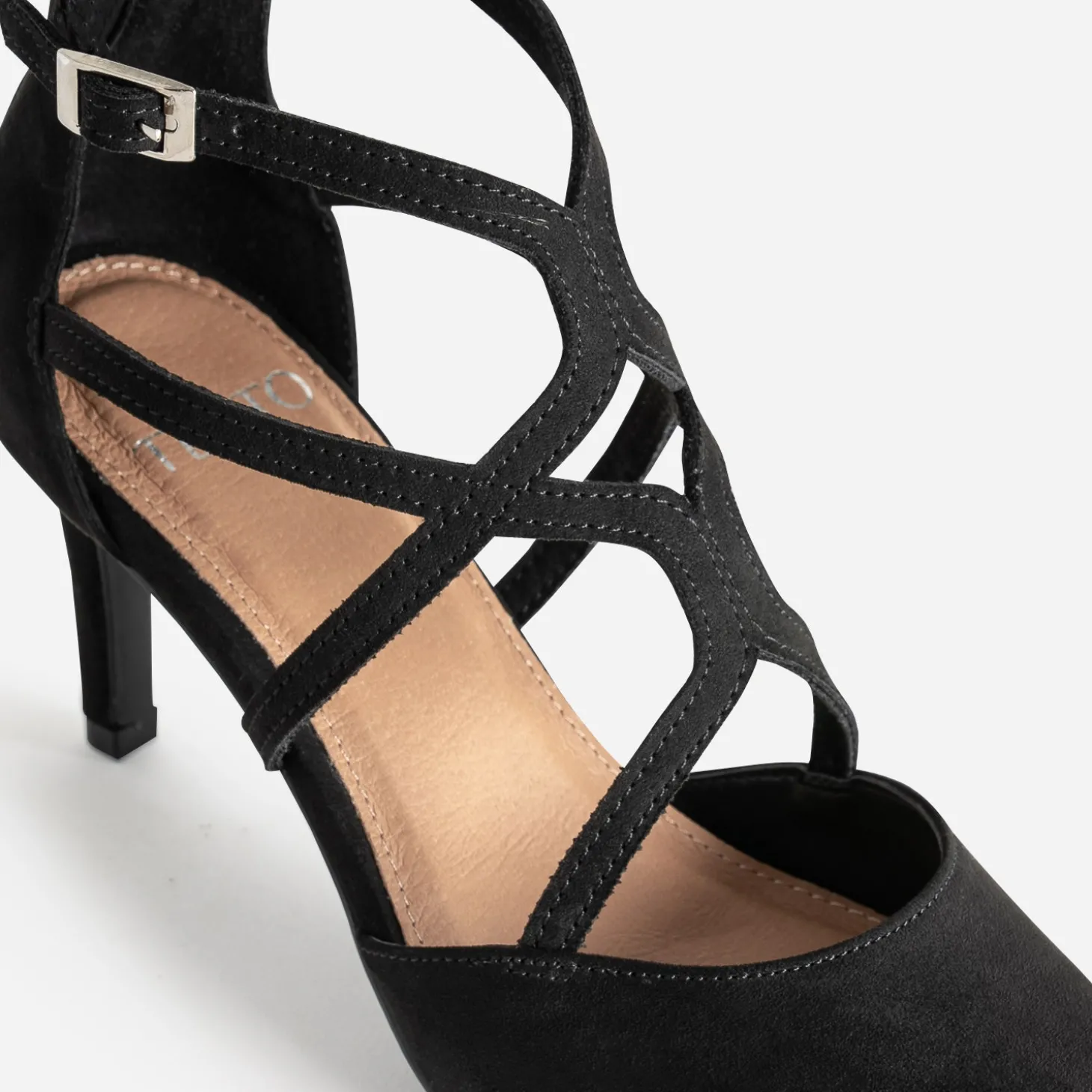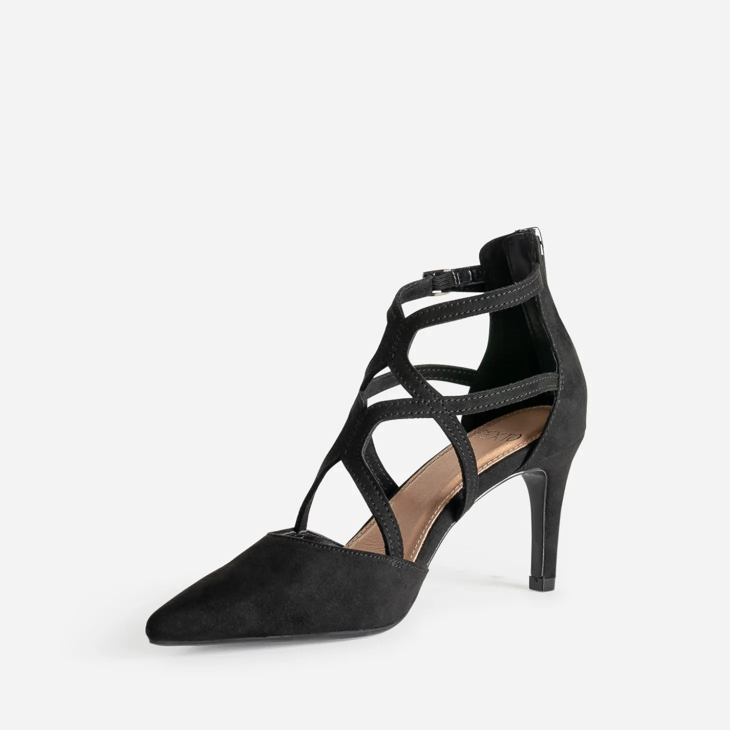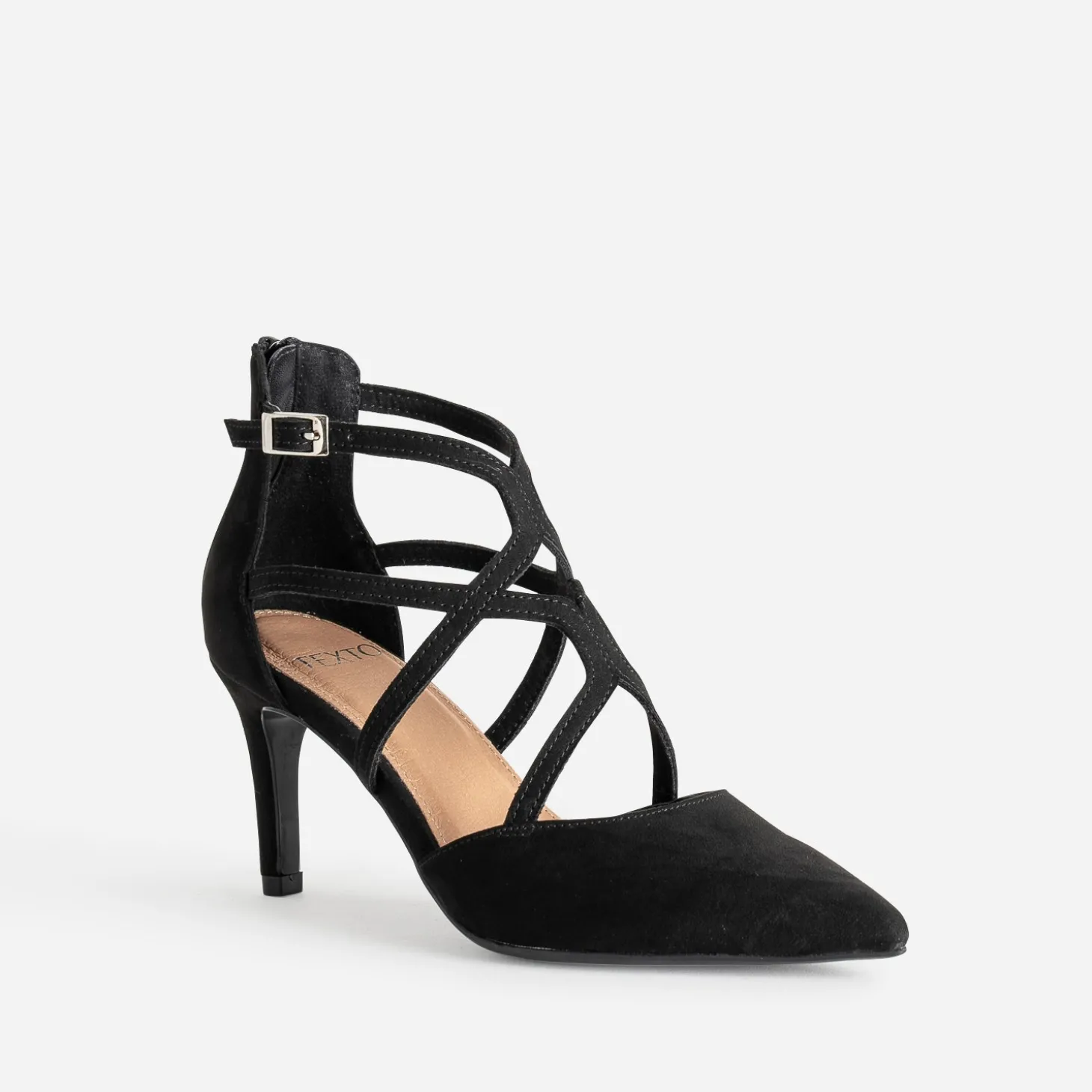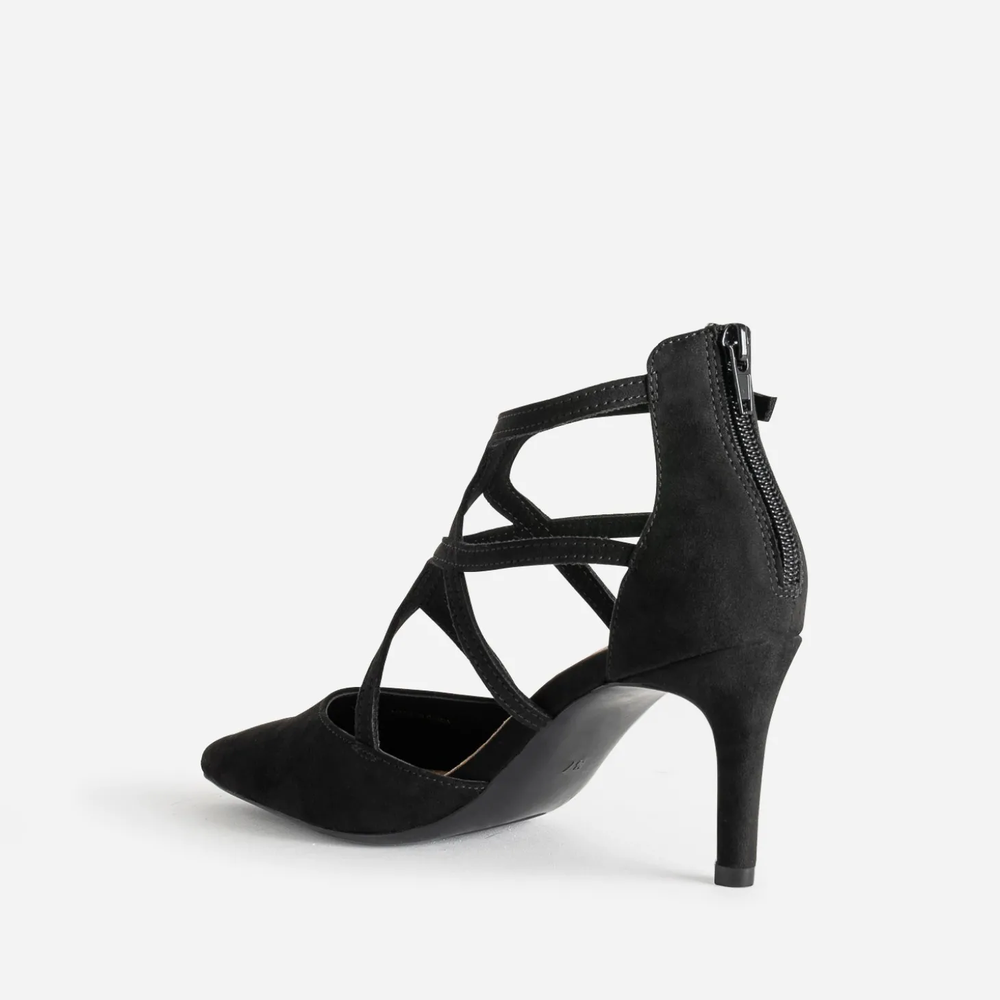 L’escarpin pour femme n’a jamais été aussi désirable. En textile noir, il gagne en chic par sa finition suédée, en maintien par ses brides inspiration cage, en hauteur par son talon fin de 8 cm. Boucle sur le côté, zip à l’arrière de la tige, il mérite d’être vu. Un modèle ultra féminin, à réserver avec une chemise et une jupe crayon ou un nouveau tailleur-pantalon cropped.