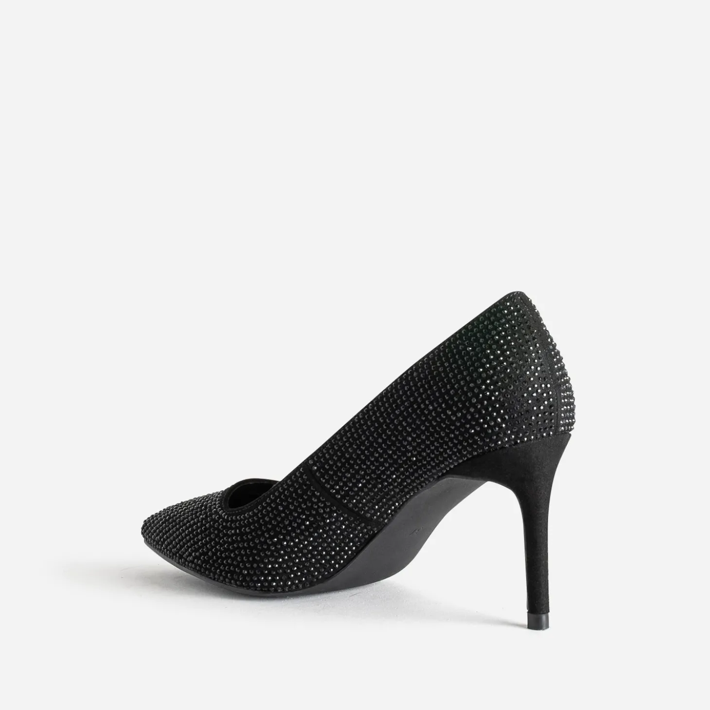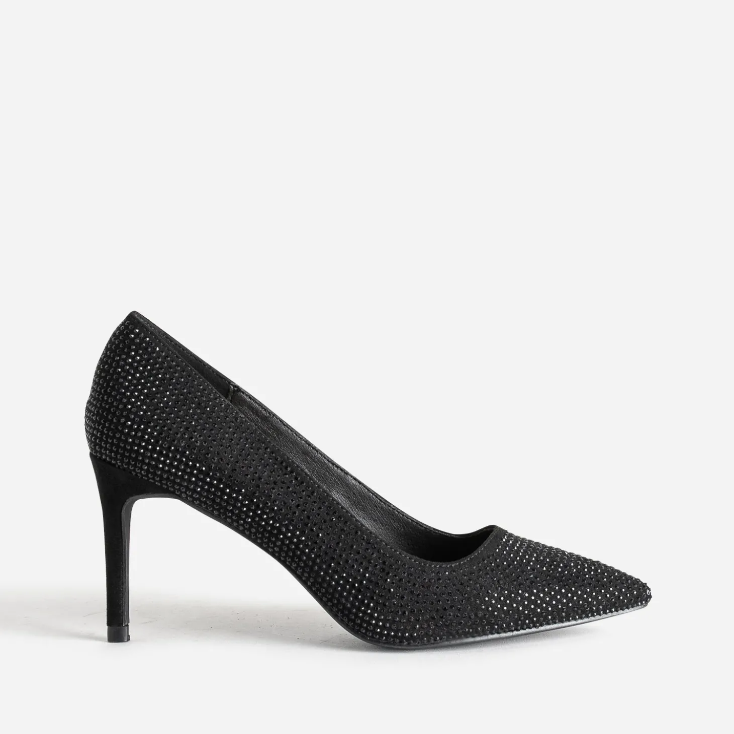 Time to glam’ ! Avis aux fans de talons hauts de 8 cm : cet escarpin femme sublime la silhouette instantanément. Conçu en textile mat, il se décline dans un sublime coloris noir, avec décor de strass ton sur ton, qui renforce son côté chic. Robe de soirée ou look rock, il est l’heure de vous faire remarquer.