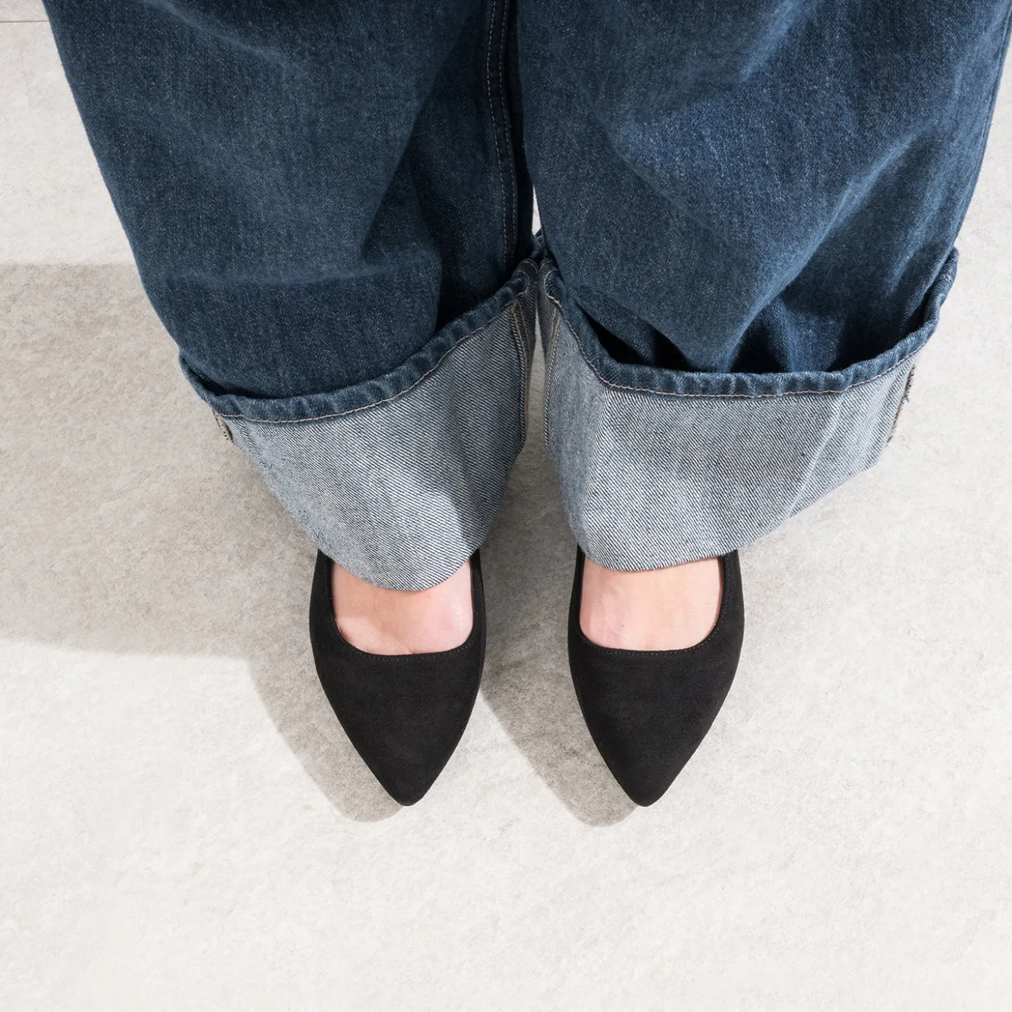 Le bout pointu est une des grandes tendances du moment. Il s’empare de cet escarpin pour femme. En matière synthétique suédée, il se décline en coloris noir, facile à porter en toutes circonstances. Il est monté sur un talon fin de 6 cm, pour trotter sans se fatiguer. Un modèle idéal avec un look formel, uniforme ou robe de soirée, en journée comme en soirée.