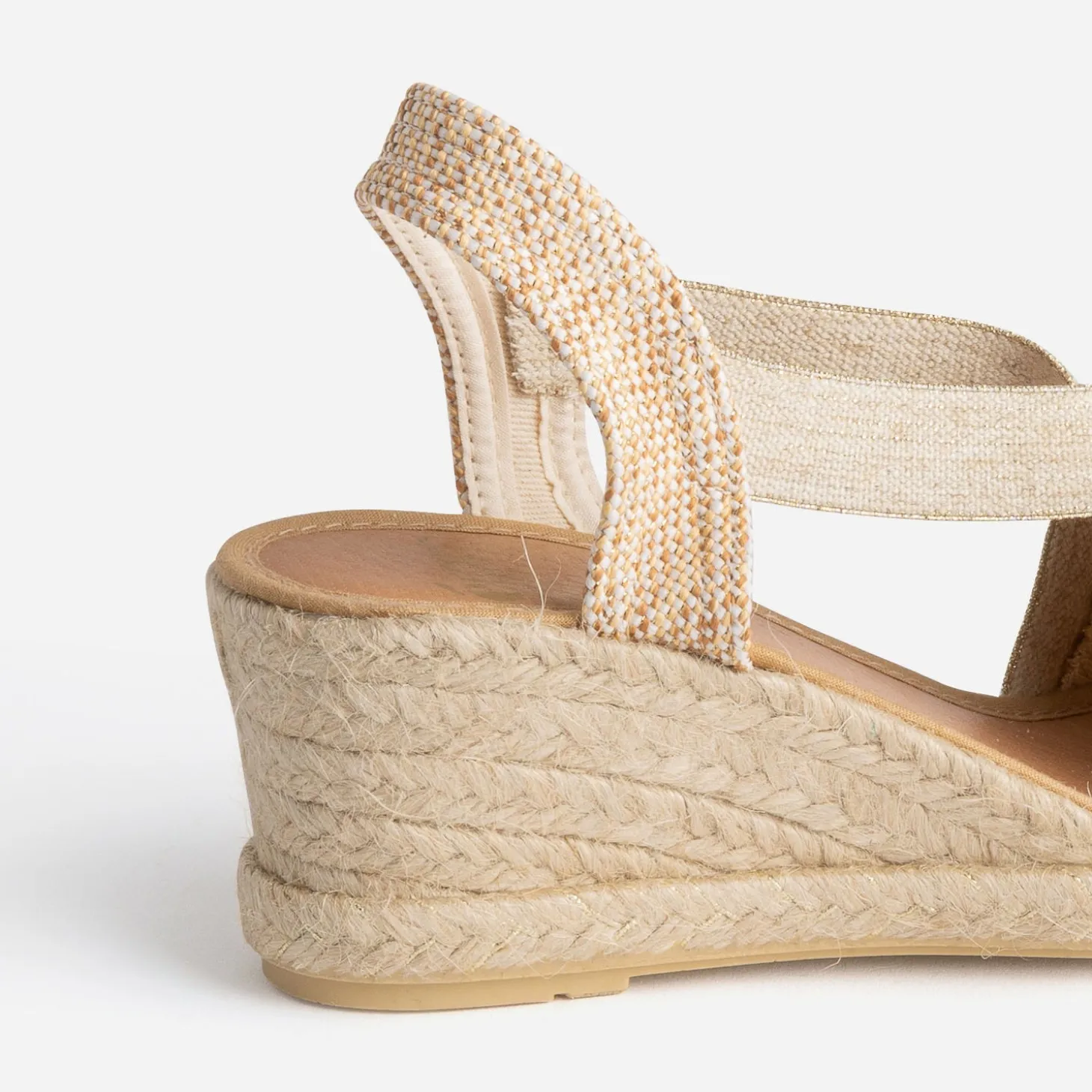 Soyez le premier à laisser votre avis sur “Espadrille compensée beige et camel pailleté or en toile” Annuler la réponse