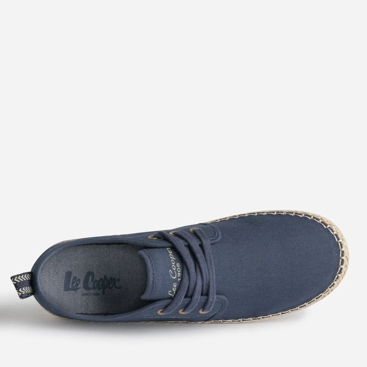 Appréhendez l’été sans compromettre votre style, avec cette chaussure hybride, mix parfait entre la tennis et l’espadrille. Confectionnée en toile bleu marine, avec doublure et première bleu chambray, elle est montée sur une semelle imitation crêpe, soulignée de corde naturelle. Un galon fantaisie placé sur le contrefort facilite l’entrée du pied. Un modèle à privilégier avec un tee-shirt ou une chemise légère et un bermuda beige ou kaki, en mode vacances.