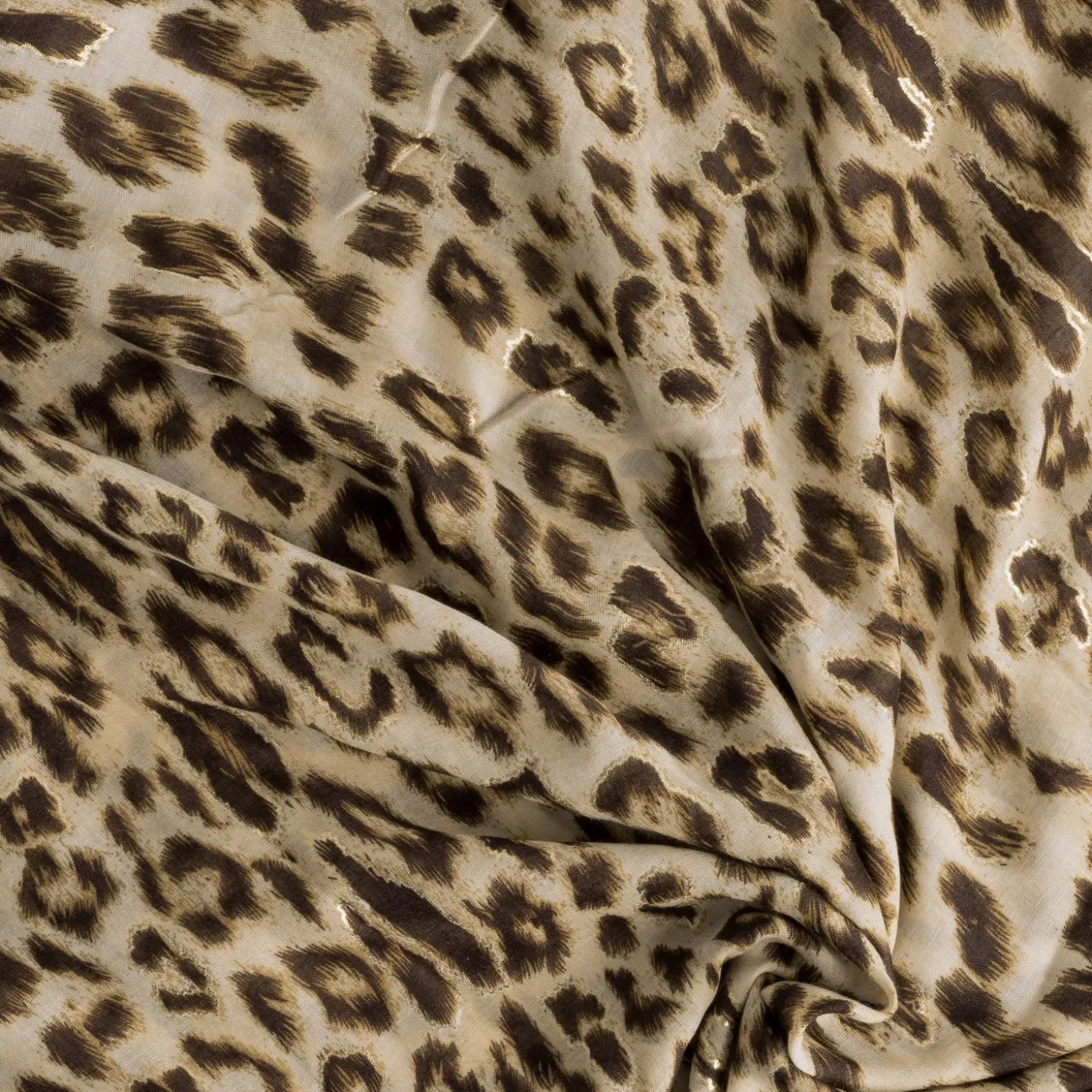 Ne passez pas à côté de l’imprimé phare de la saison : le motif léopard. Il anime ce foulard pour femme de taches marron sur fond beige, dont certaines bordées d’une ligne métallisée dorée. Un accessoire à tester avec du noir, du blanc, du beige, du jean bleu.